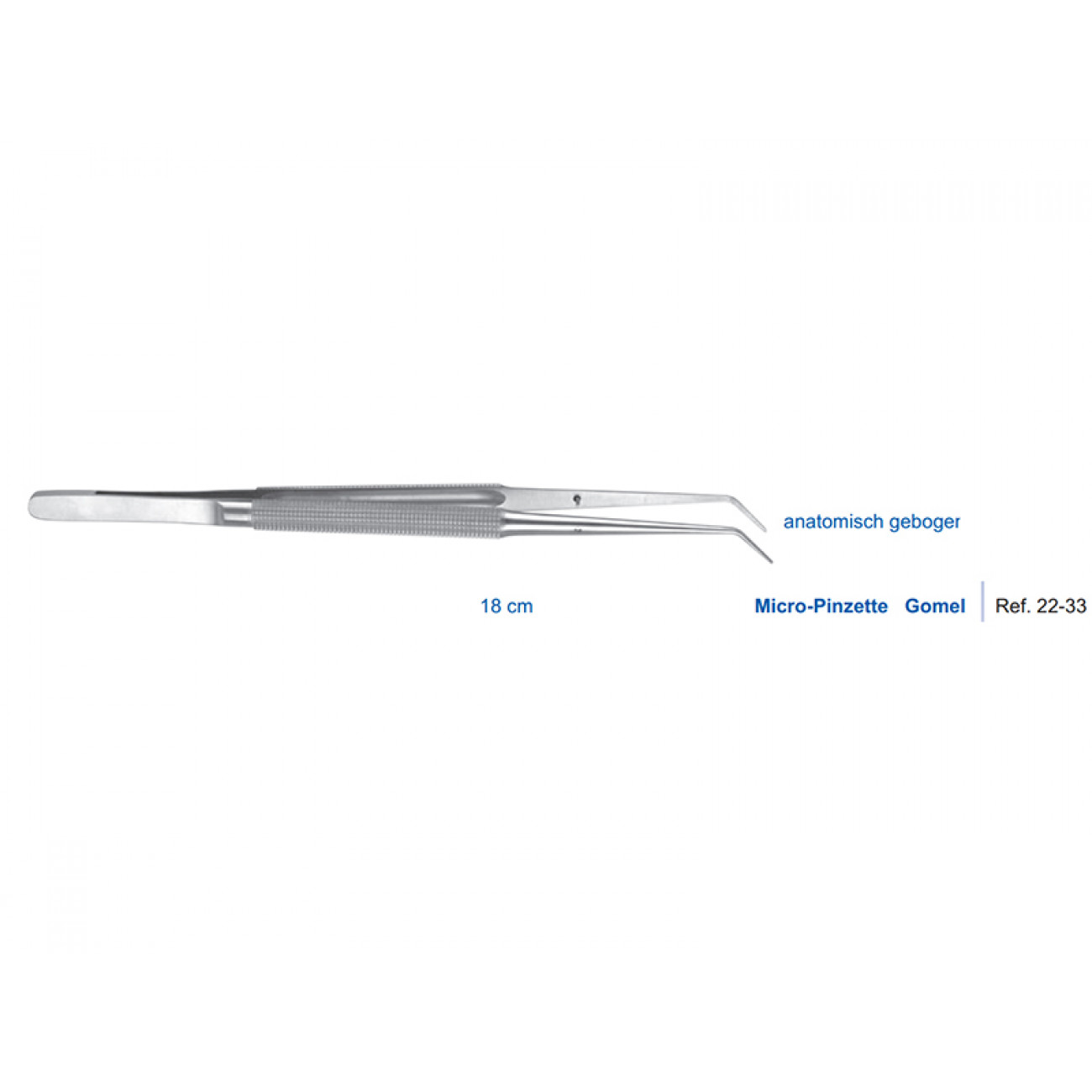 "Пинцет микро анатомический изогнутый Gomel, 18 см (22-33)" — это высококачественный инструмент, предназначенный для проведения точных и деликатных манипуляций в стоматологии.