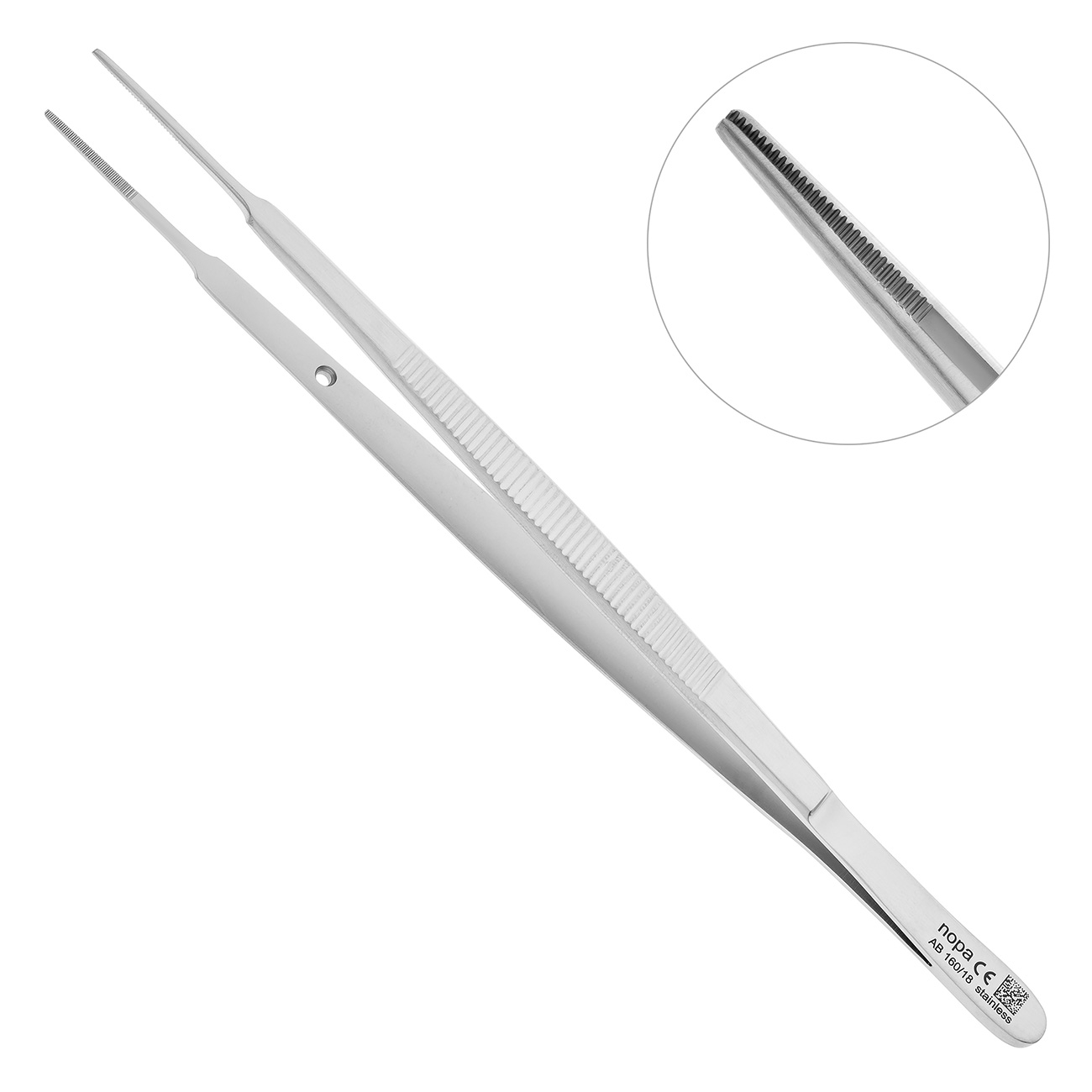 Узкие, вытянутые и тонкие рабочие части пинцета позволяют осуществлять прецизионные манипуляции и обеспечивают максимальный обзор рабочего поля. Благодаря ретенционному узору на внутренних поверхностях браншей пинцет плотно захватывает и удерживает мягкие ткани в ротовой полости.