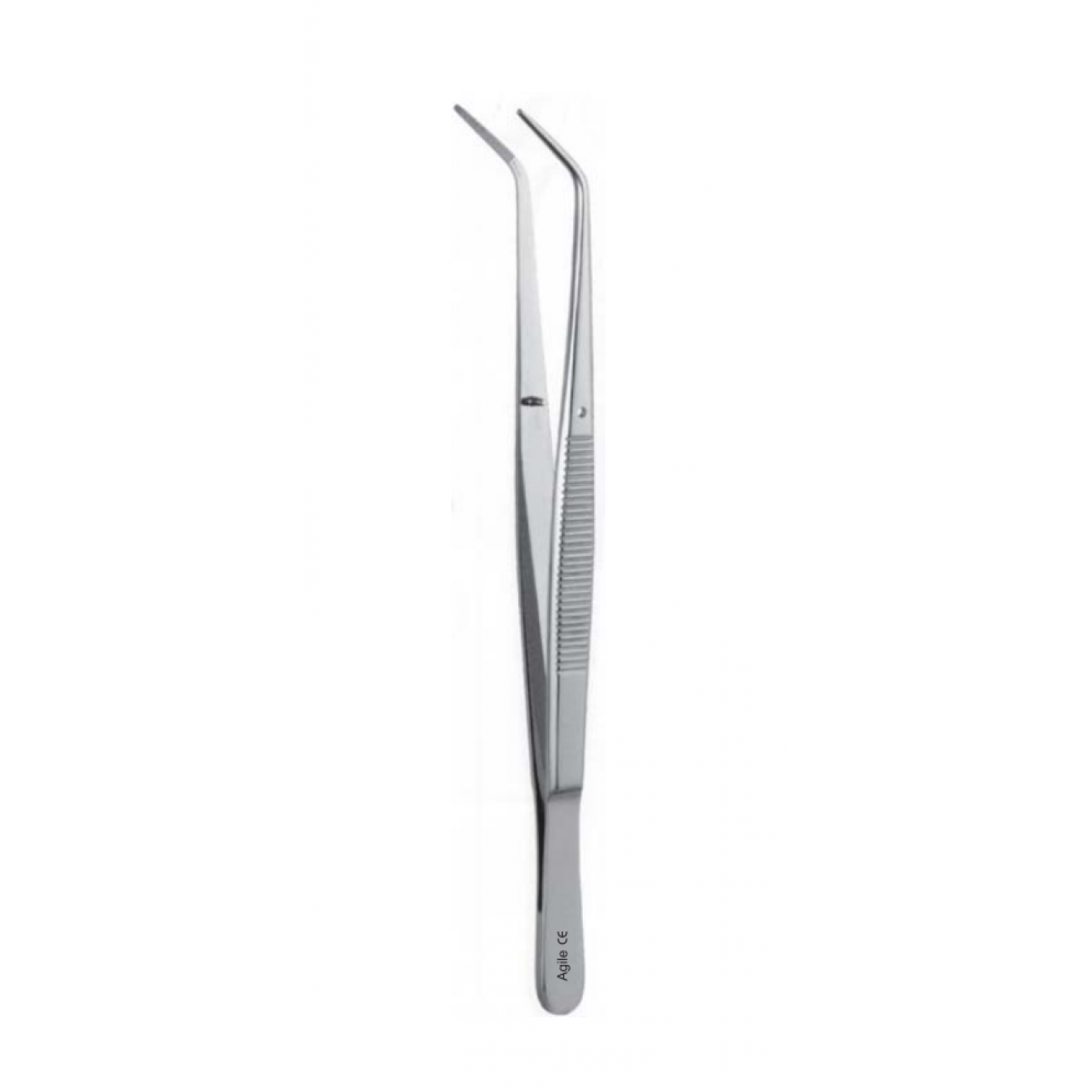 Стоматологический пинцет College AGILE 03-174 общего предназначения с изогнутым удлиненным кончиком предназначен для размещения и удержания стерильных материалов (тампонов и валиков) в полости рта, включая введение ватных валиков в пространство между щекой и губами при проведении стоматологических процедур.