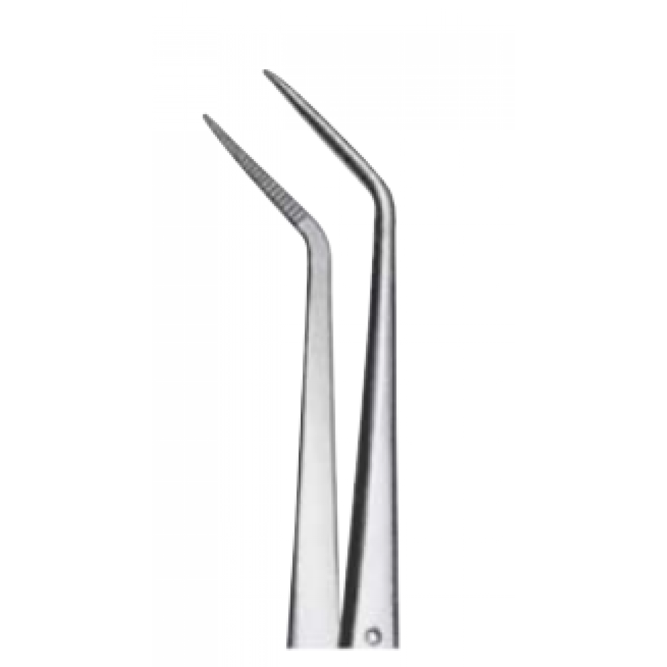 Попречная насечка на рукояти способствует надежному удержанию инструмента в перчатках при введении и выведении пинцета из полости рта.