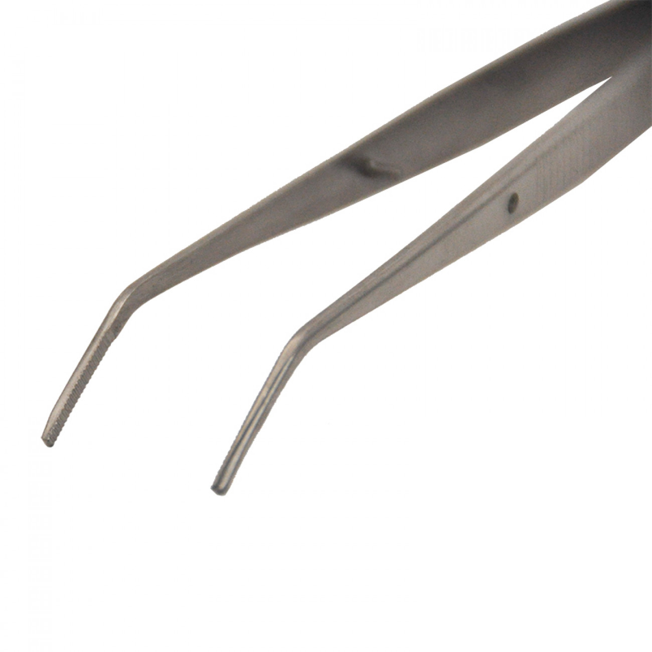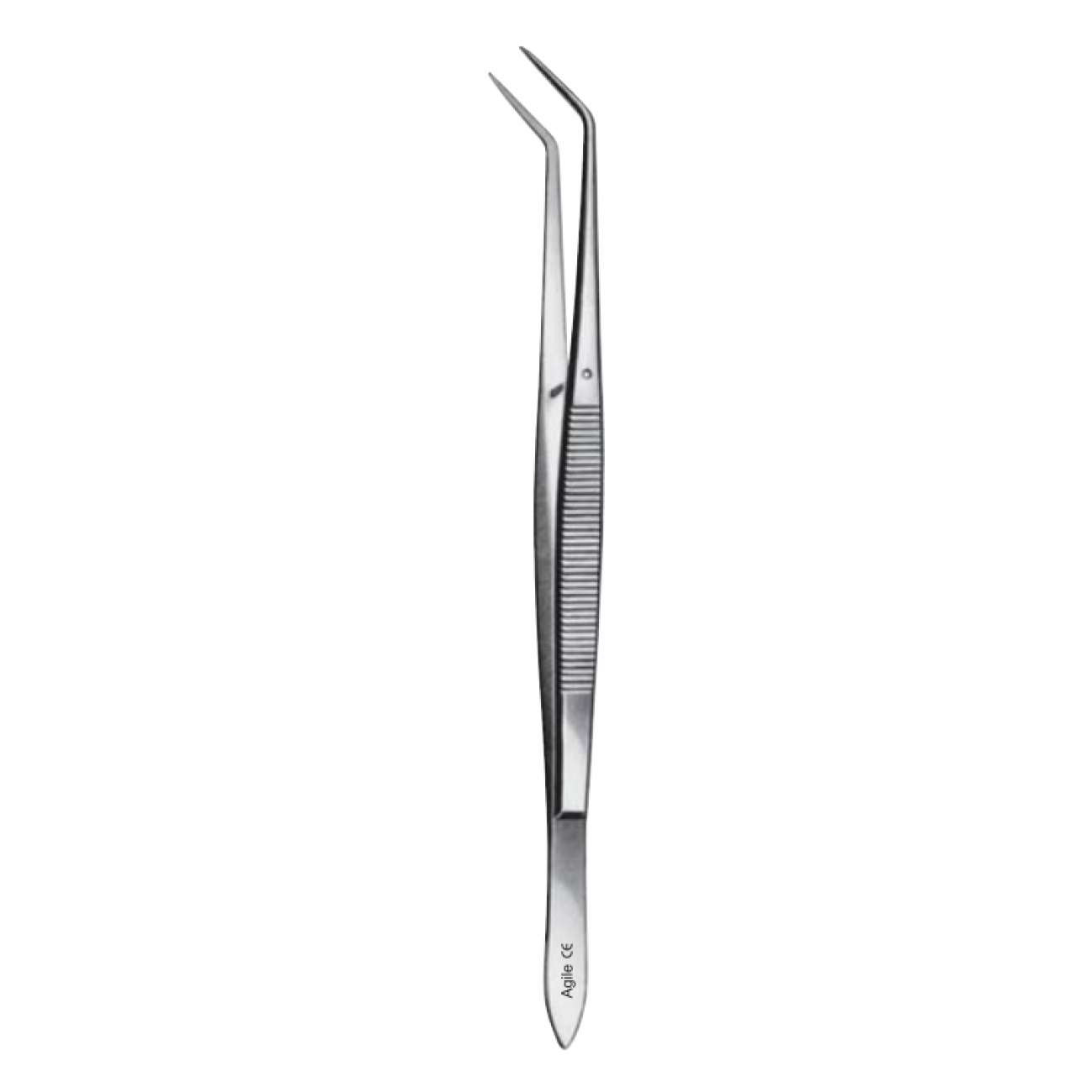 Стоматологический пинцет для стерильных материалов AGILE Flagg 03-148 с поперечно зазубренными рабочими поверхностями предназначен для надежного удержания небольших ватных валиков, шариков, марлевых салфеток, а также протезных и ортодонтических компонентов при установке ортодонтических конструкций - эластиков, проволоки и небольших брекетов. Пинцет Flagg 03-148 особенно удобен при наложении лечебных повязок при пародонтологическом и эндодонтическом лечении. Тонкие заостренные изогнутые кончики обеспечивают оптимальный контроль и точность при размещении материала в полости рта.