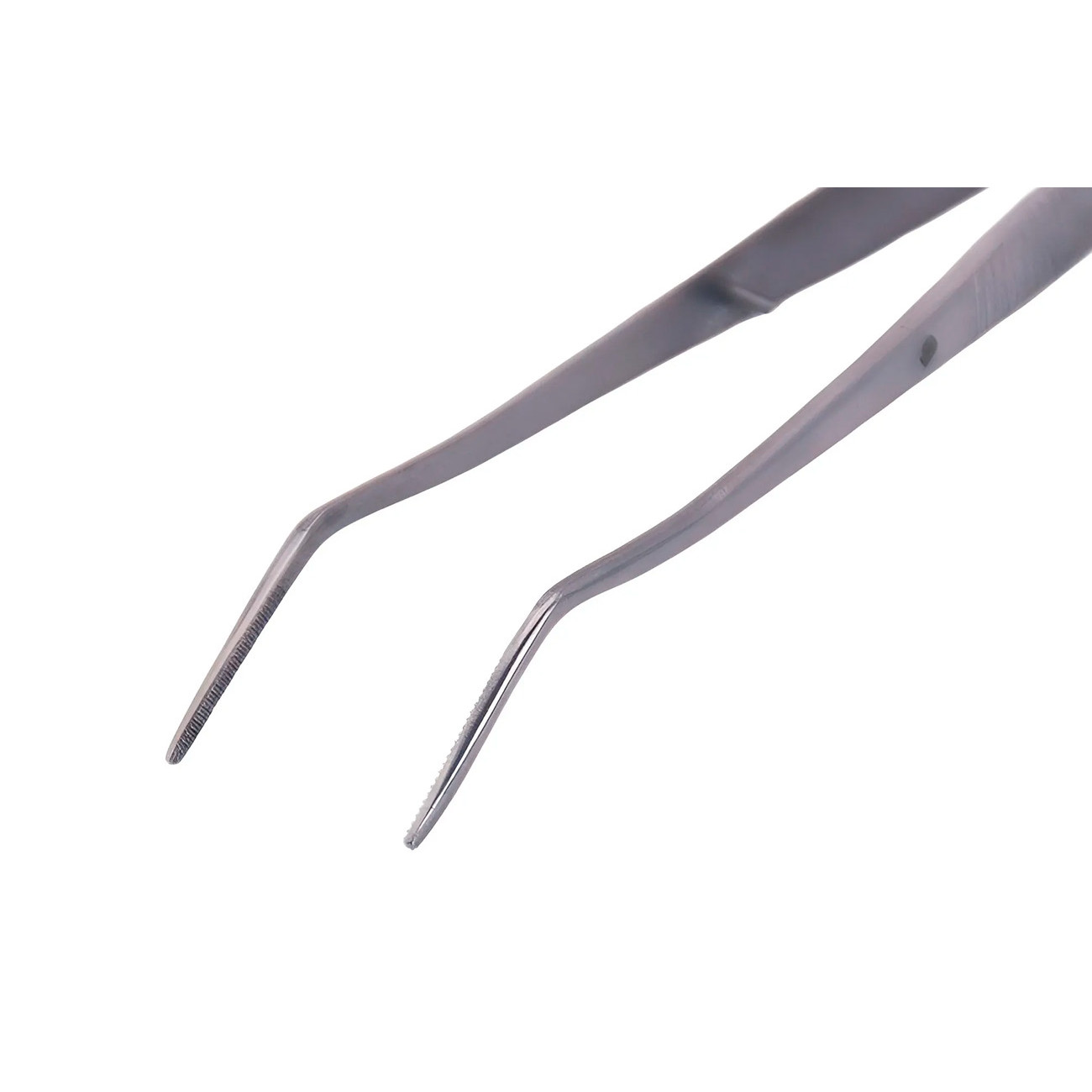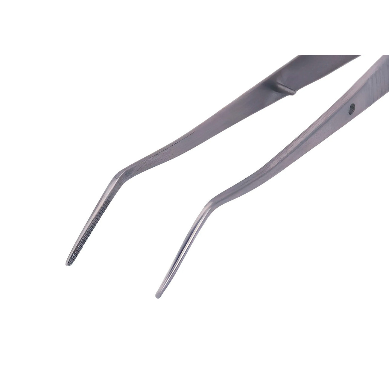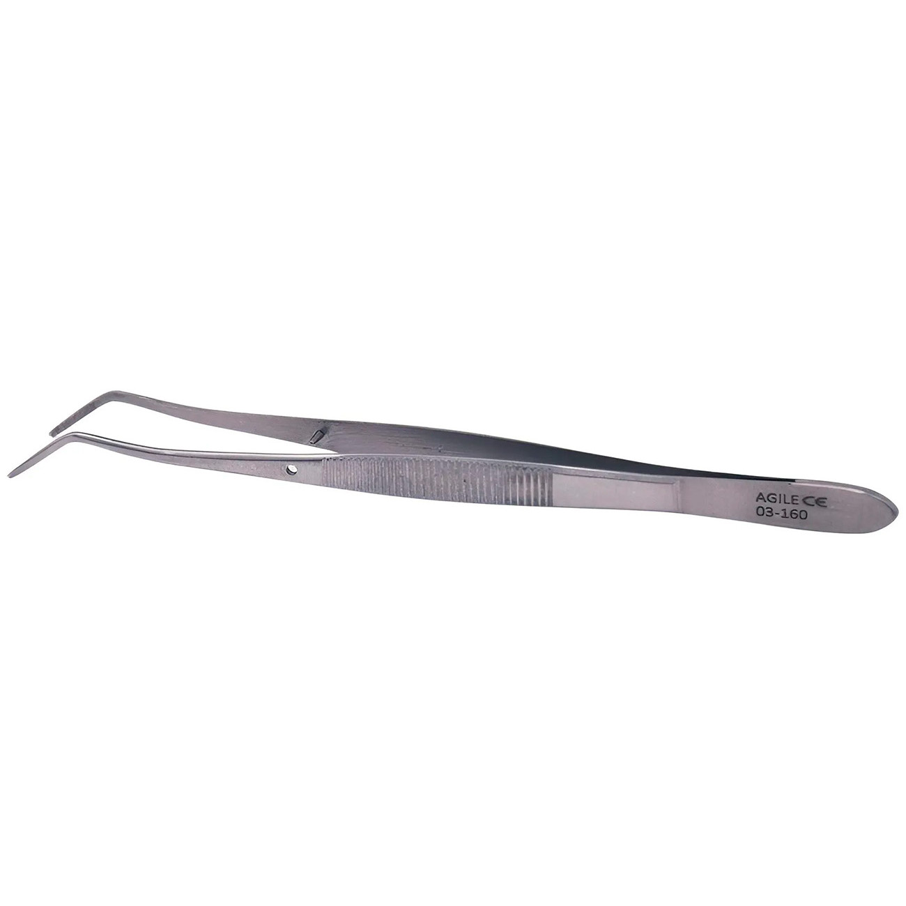 Стоматологический фиксирующий пинцет AGILE Meriam 03-160 с двойным изгибом и поперечно зазубренными рабочими поверхностями применяется для прочного захвата и фиксации скользящих тканей десны, остановки небольших кровотечений и удаления отсеченных тканей при проведении хирургических операций.