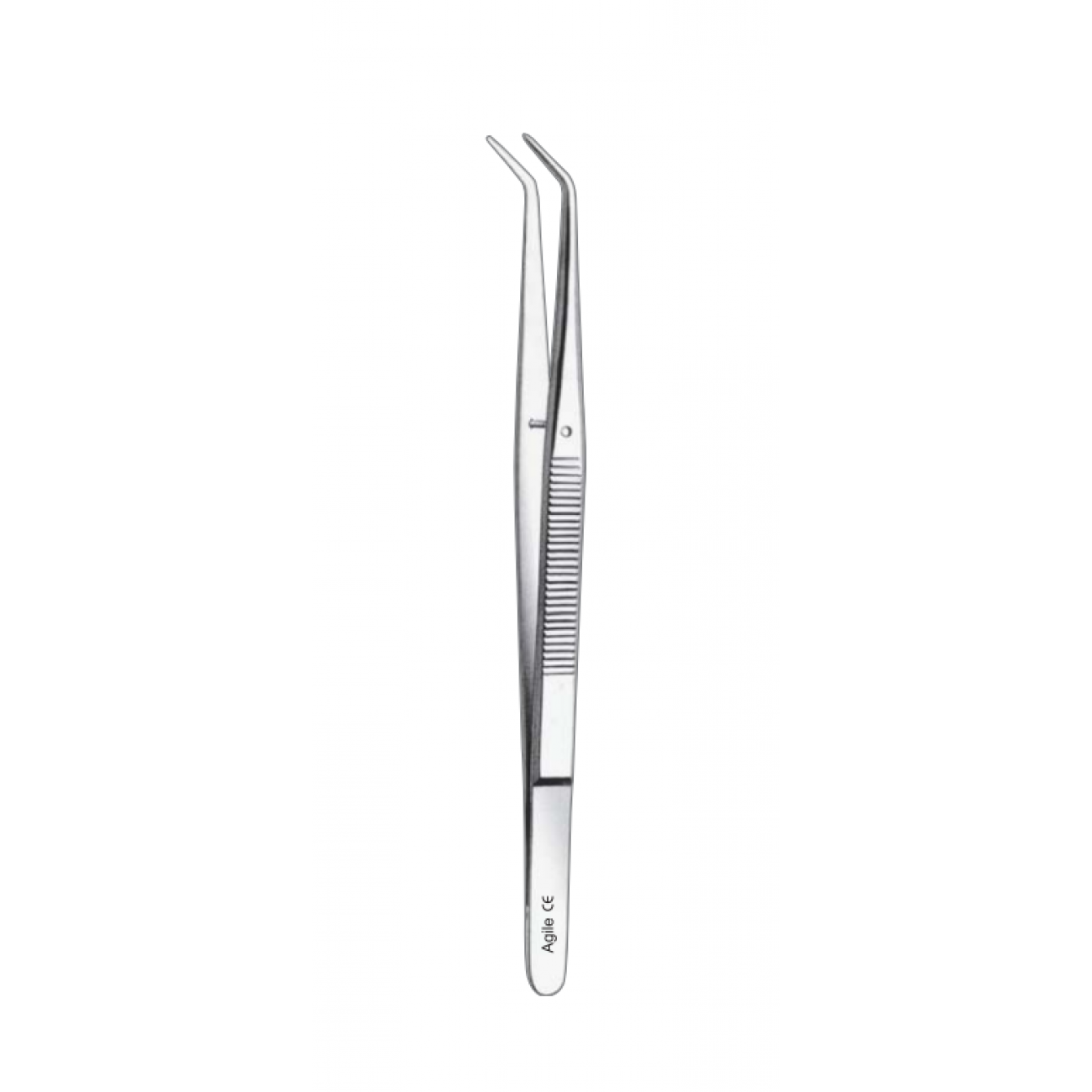 Стоматологический пинцет Perry Tissue Forceps AGILE 03-184 с изогнутым наконечником и гладкими рабочими поверхностями применяется для атравматичного захвата легкоповреждаемых мягких тканей рта при проведении хирургических операций.