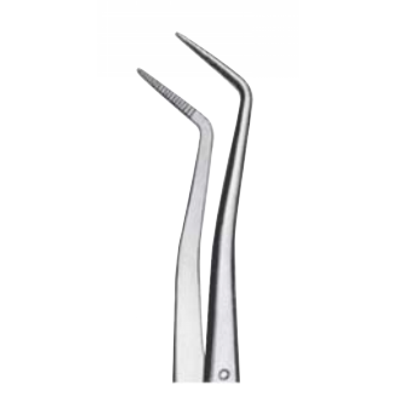 Попречная насечка на рукояти способствует надежному удержанию инструмента в перчатках при введении и выведении пинцета из полости рта.