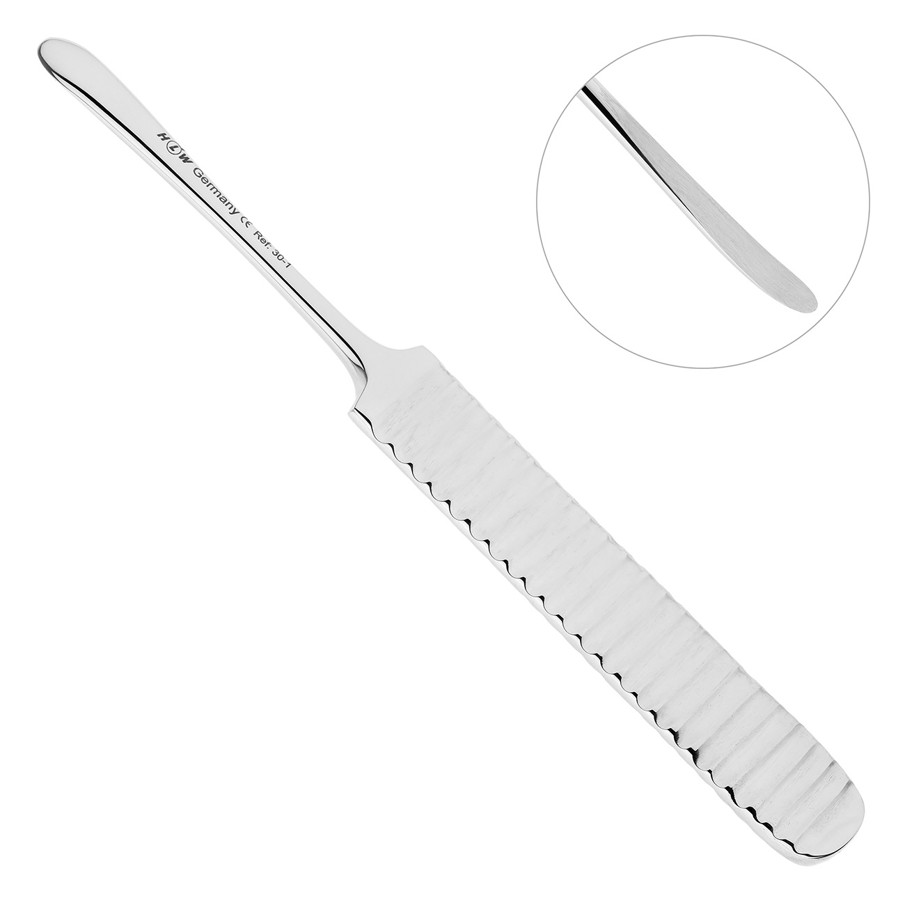 Назначение: предназначен для отделения мягких тканей от кости или других твёрдых тканей во время хирургических процедур. Используется для создания доступа к операционному полю и отделения тканей при проведении различных манипуляций.