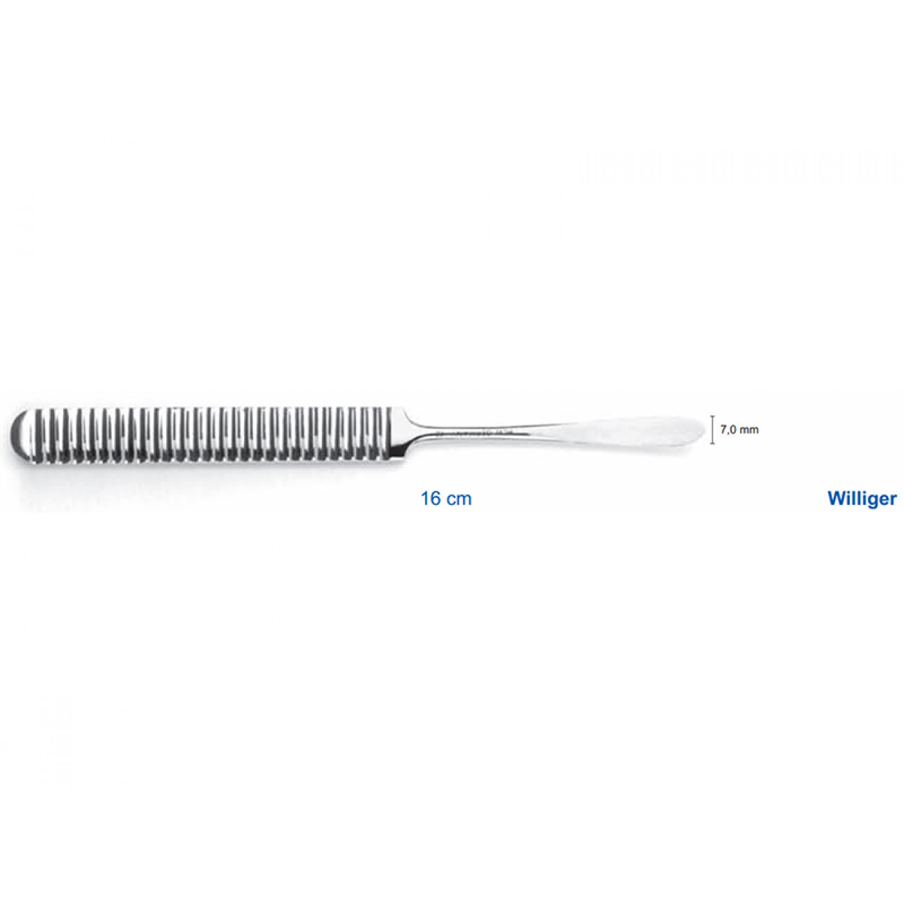 Распатор Williger 30-2 изготовлен из высококачественного материала, который гарантирует долговечность и надежность инструмента. Он предназначен для отделения мягких тканей от кости или других твердых тканей во время операций.