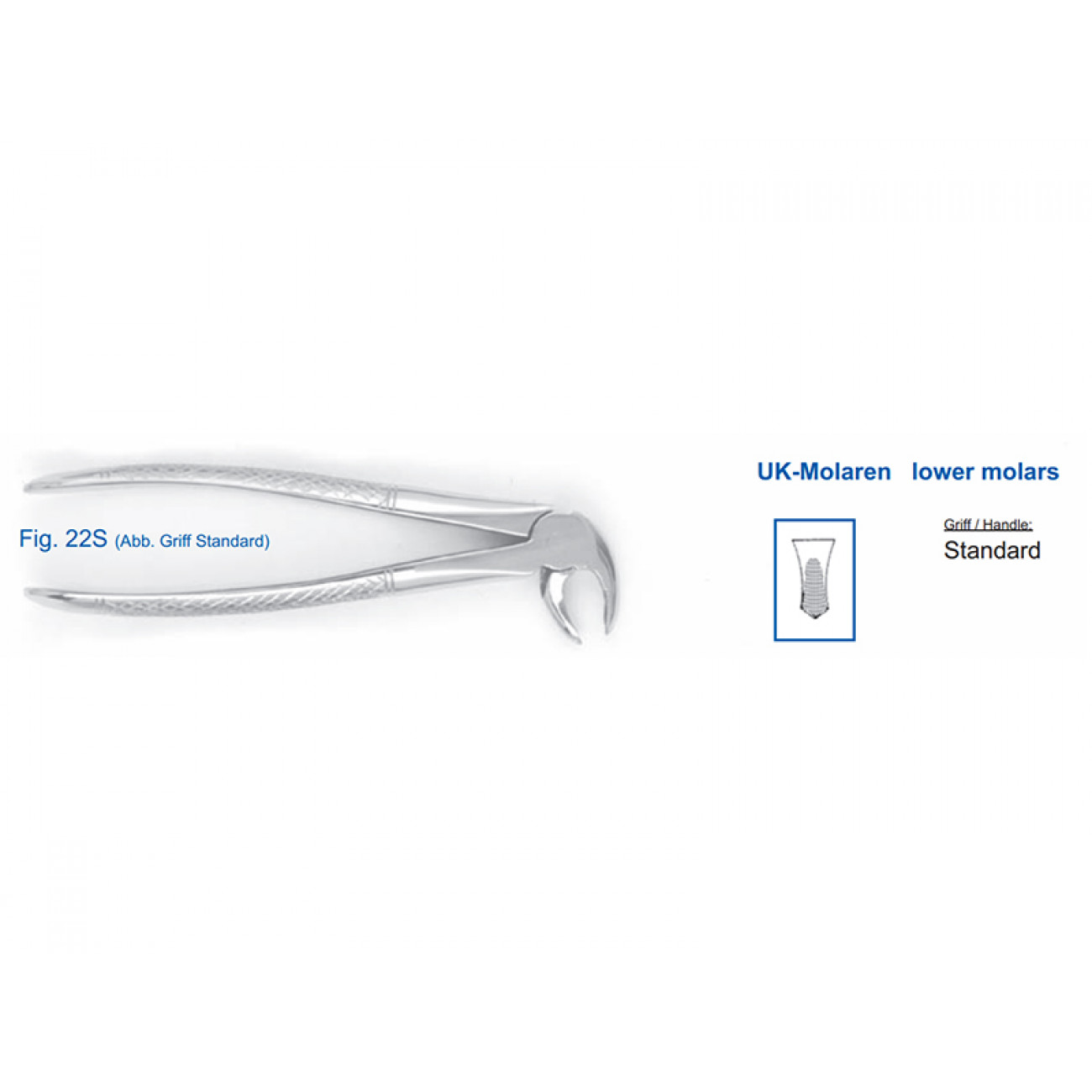 Уменьшенный инструмент не цепляется за губы и не загораживает обзор при проведении процедур в ротовой полости малого размера. Расположенные под прямым углом неходящиеся щечки с шипами и насечкой обеспечивают оптимальный охват нижних моляров и быструю экстракцию. Щипцы оснащены крупными нескользящими рукоятками стандартной формы для эффективной работы в перчатках.