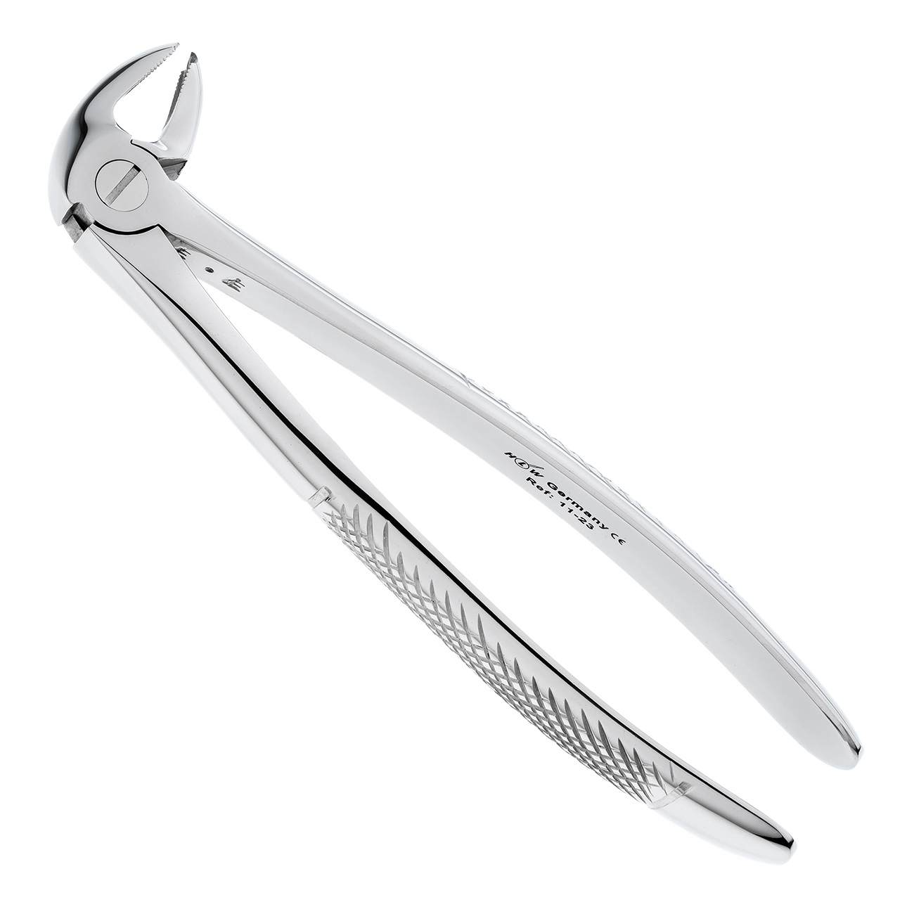 Расположенные под прямым углом неходящиеся щечки с шипами и насечкой обеспечивают оптимальный охват нижних моляров и быструю экстракцию. Щипцы оснащены крупными нескользящими рукоятками стандартной формы для эффективной работы в перчатках.