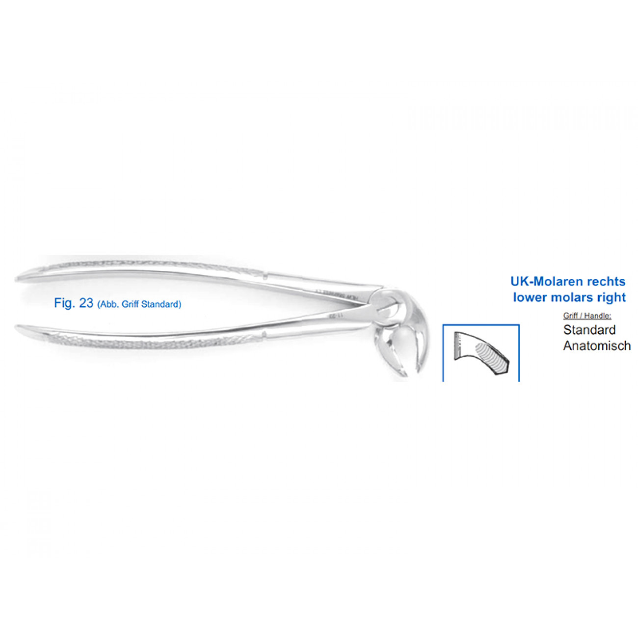 У нас вы можете приобрести клювовидные правосторонние стоматологические щипцы HLW 11-23 с шипами для удаления правых нижних моляров по доступной цене.
