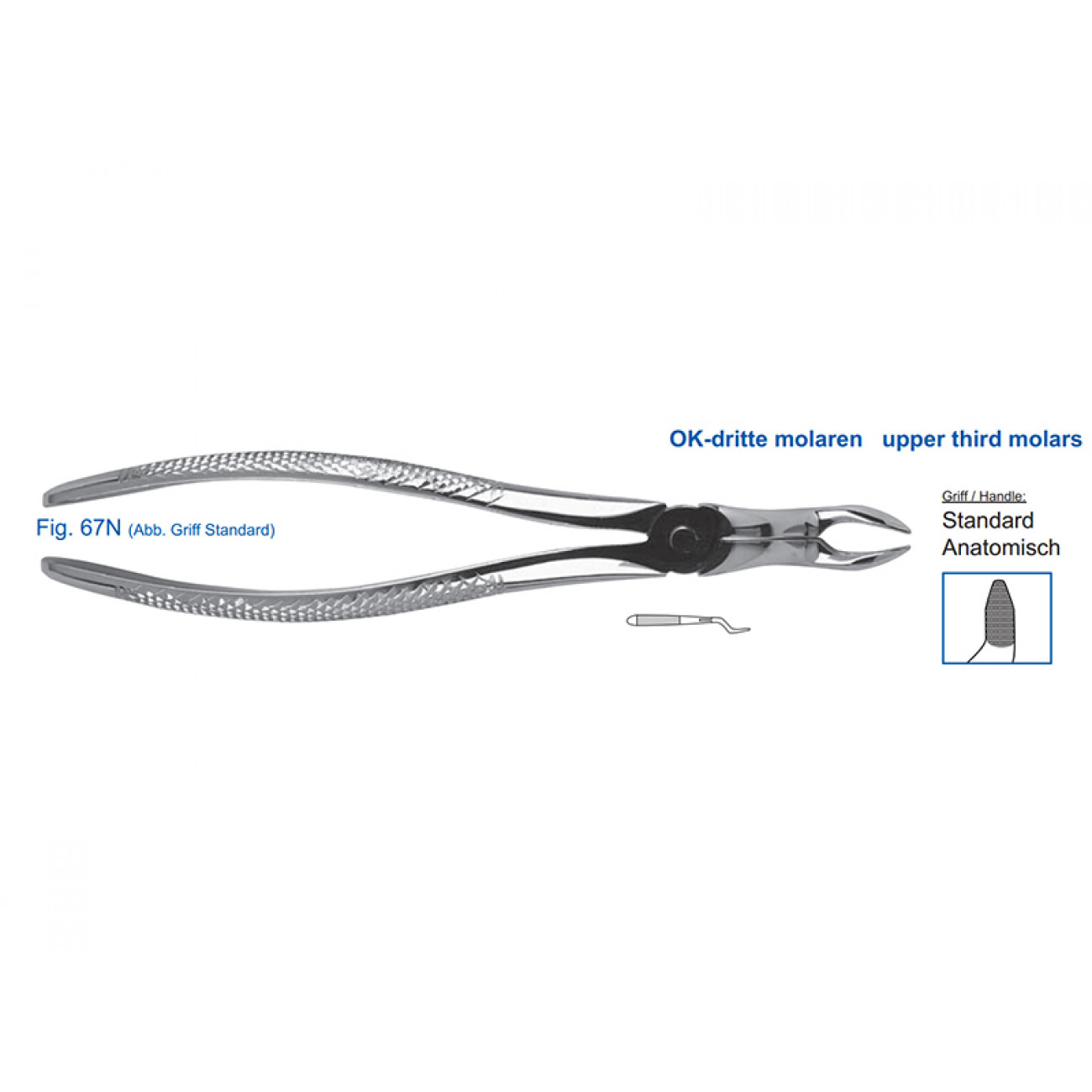У нас вы можете приобрести штыковидные стоматологические щипцы HLW 11-67N с глубоким захватом для удаления зубов мудрости по доступной цене.