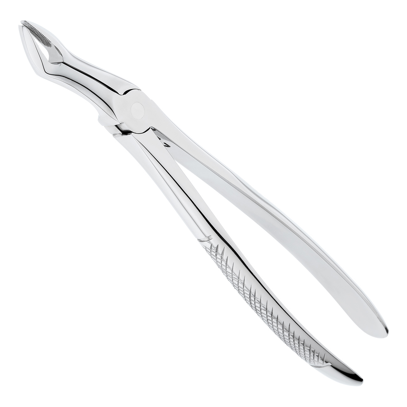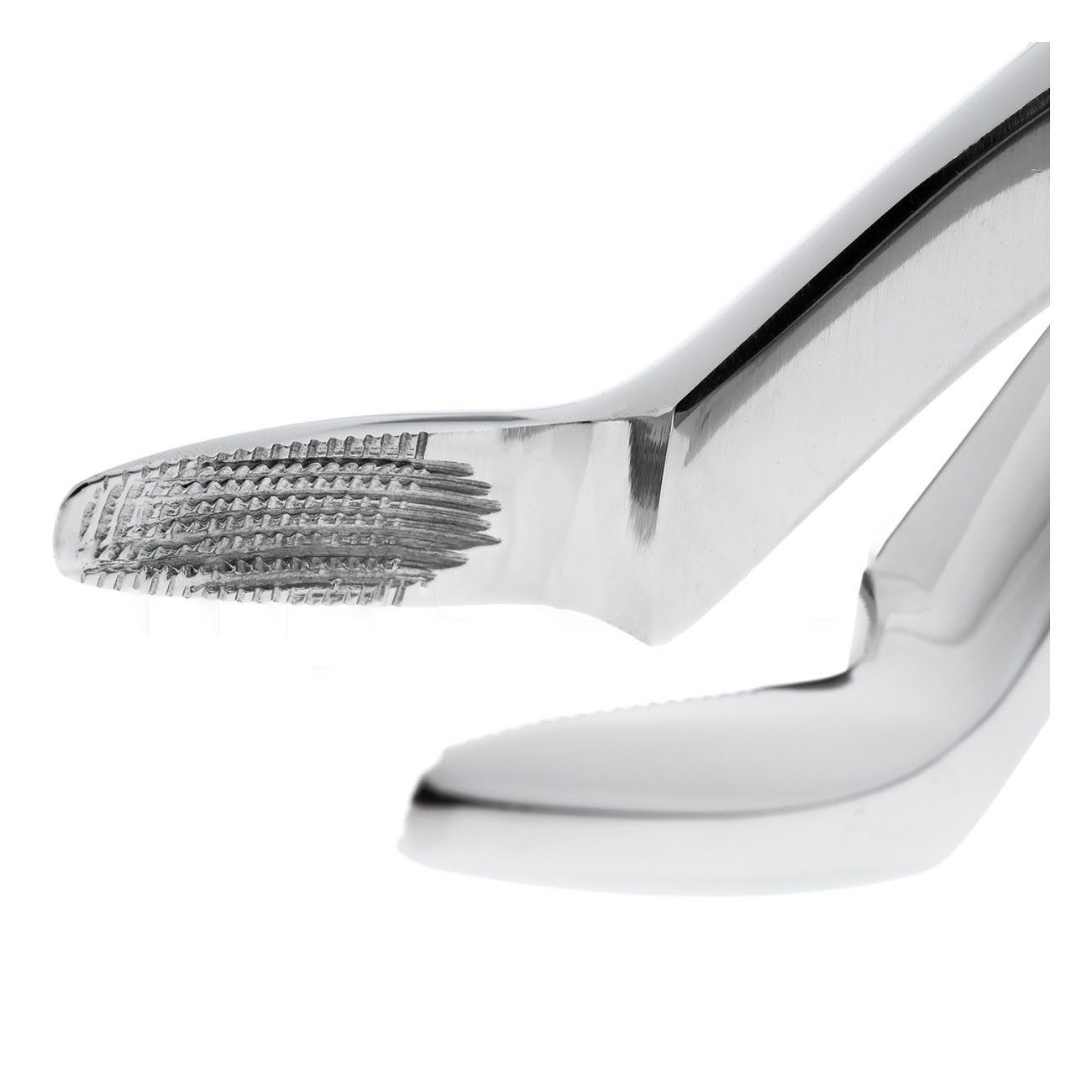 Сужающиеся к кончику несходящиеся рабочие части с перекрестной насечкой обеспечивают оптимальный доступ к молярам в глубине полости рта и надежный захват зуба. Щипцы оснащены крупными нескользящими рукоятками стандартной формы для эффективной работы в перчатках.