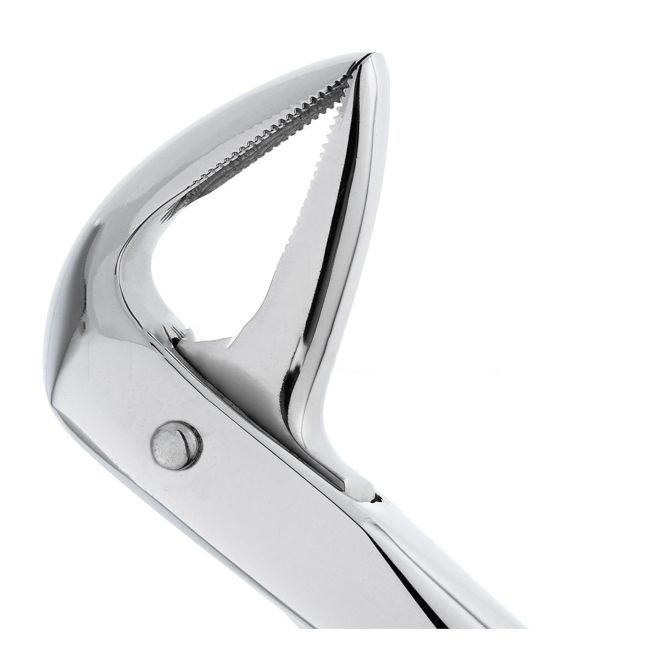 Расположенные под прямым углом сходящиеся бранши с перекрестной насечкой обеспечивают оптимальный доступ к корням зубов нижней челюсти и прочный охват. Щипцы оснащены крупными нескользящими рукоятками стандартной формы для эффективной работы в перчатках.
