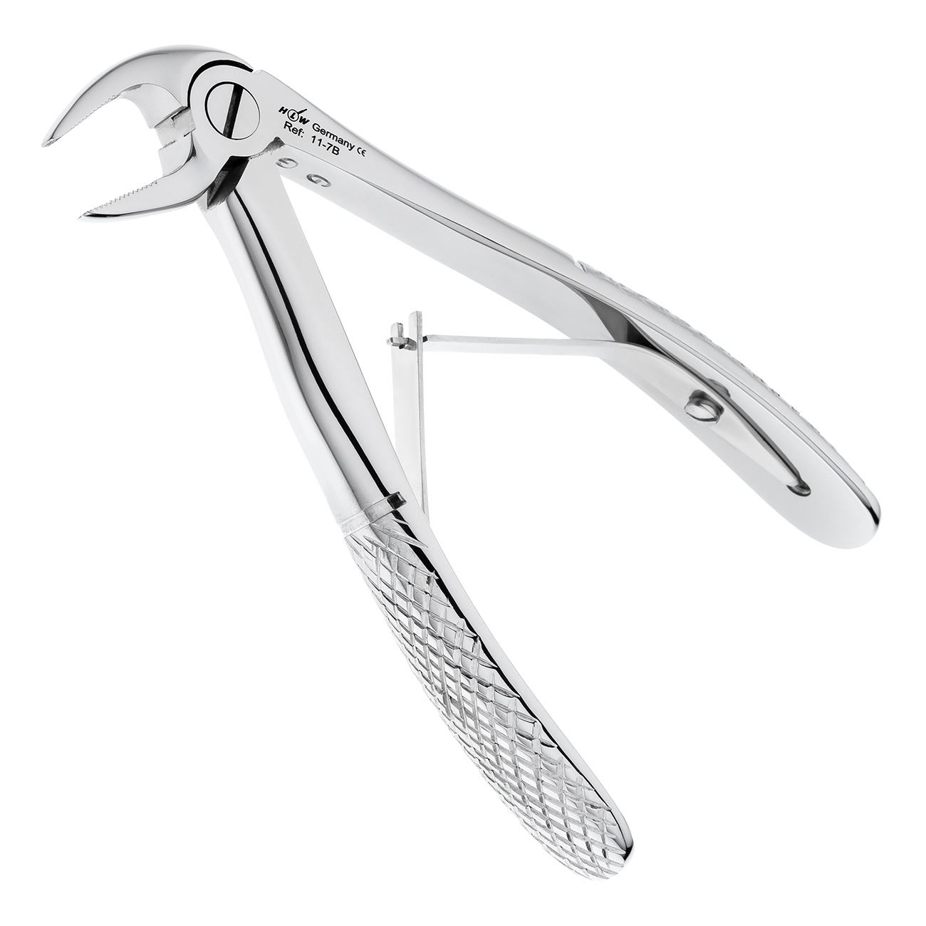 Щипцы 11-7B предназначены для удаления нижних корневых зубов у детей. Они изготовлены из высококачественной стали, что обеспечивает прочность и долговечность инструмента.