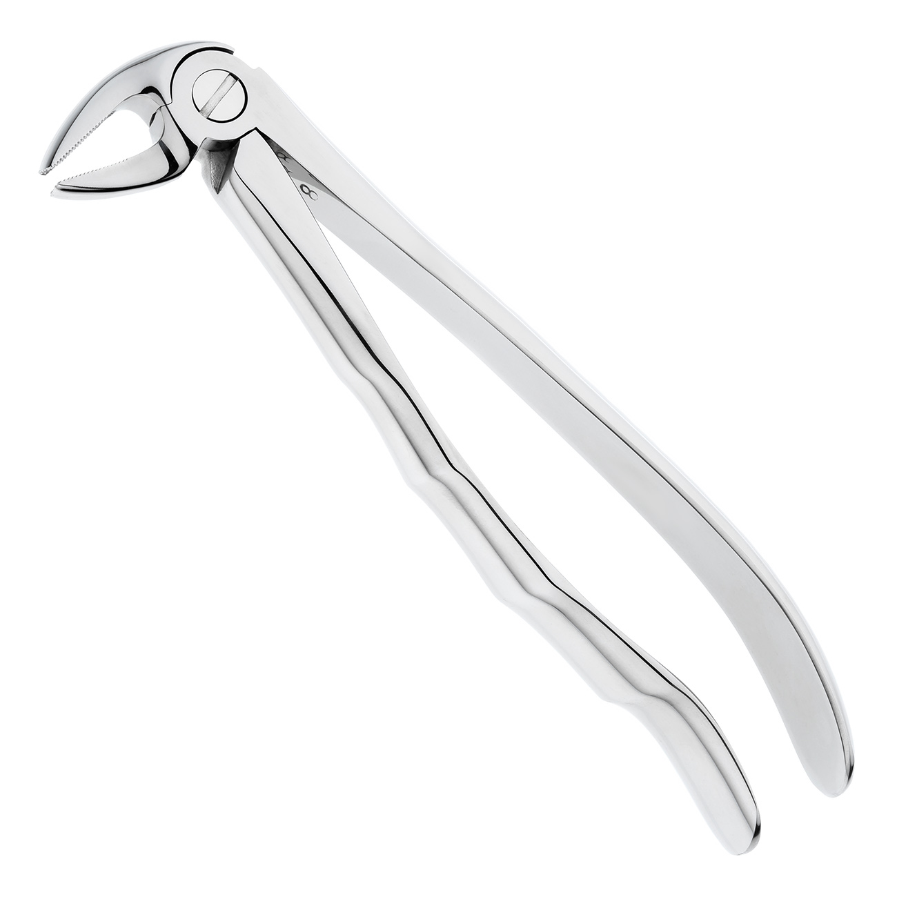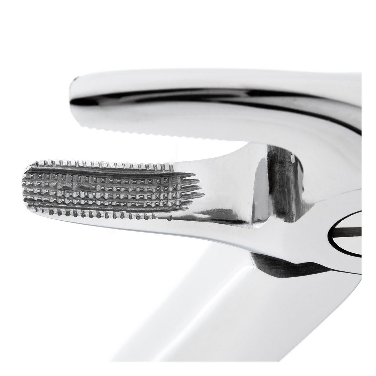 Расположенные под прямым углом неходящиеся щечки с насечкой обеспечивают оптимальный охват премоляров и зубов фронтальной группы, а также быструю экстракцию. Для лучшего приложения силы щипцы оснащены рифлеными эргономичными рукоятками анатомического типа с обратным изгибом.