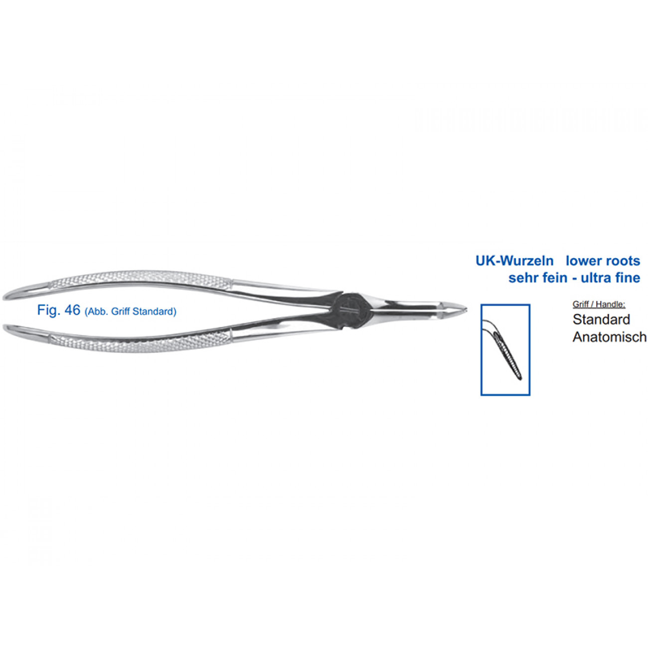 Щипцы для удаления зубов нижние, корневые ультратонкие 12-46 — это инструмент, который используется в стоматологии для извлечения зубов и их корней.