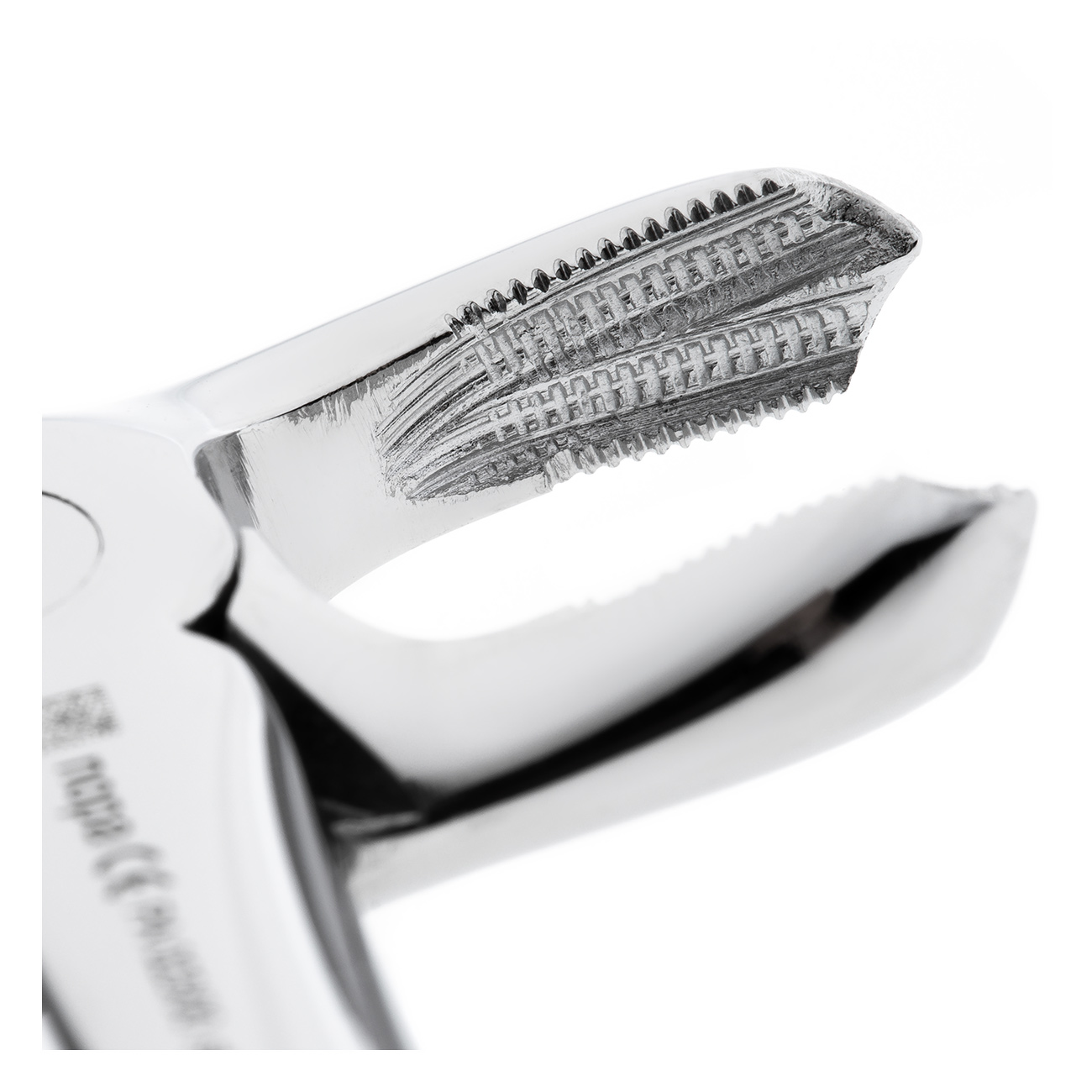 Такое устройство щечек обеспечивает плотный захват зуба и облегчает его удаление.