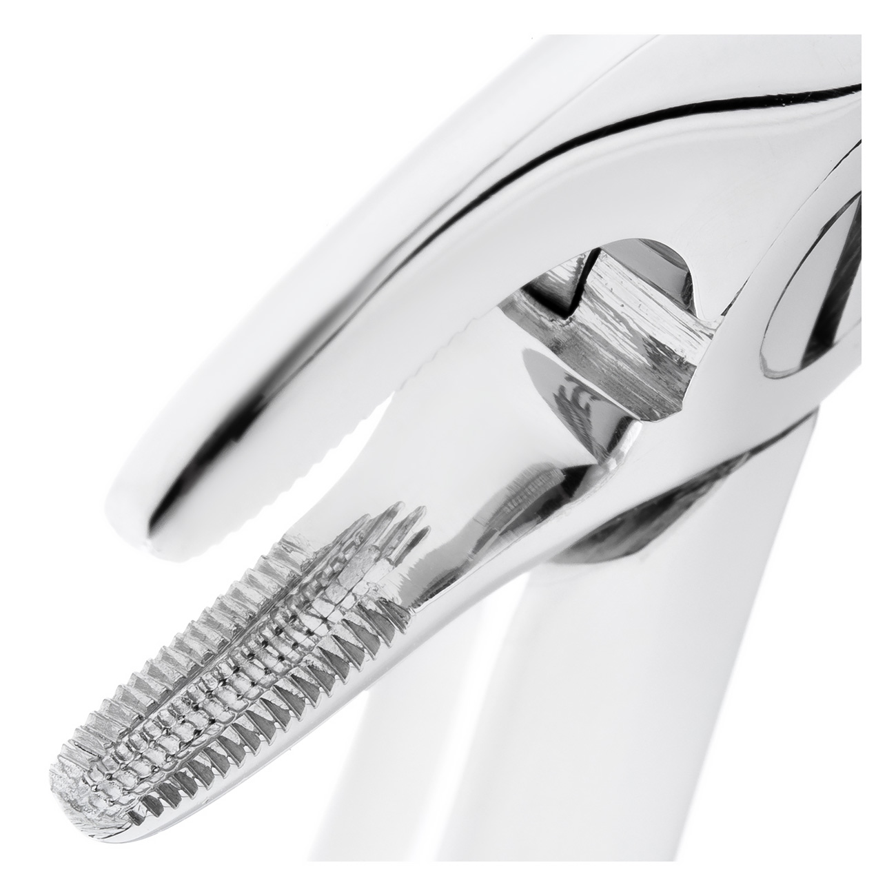 Щипцы имеют клювовидные сходящиеся рабочие части. Внутренняя поверхность щечек имеет продольно-поперечные насечки, обеспечивая хорошую фиксацию щипцов на корне удаляемого зуба.