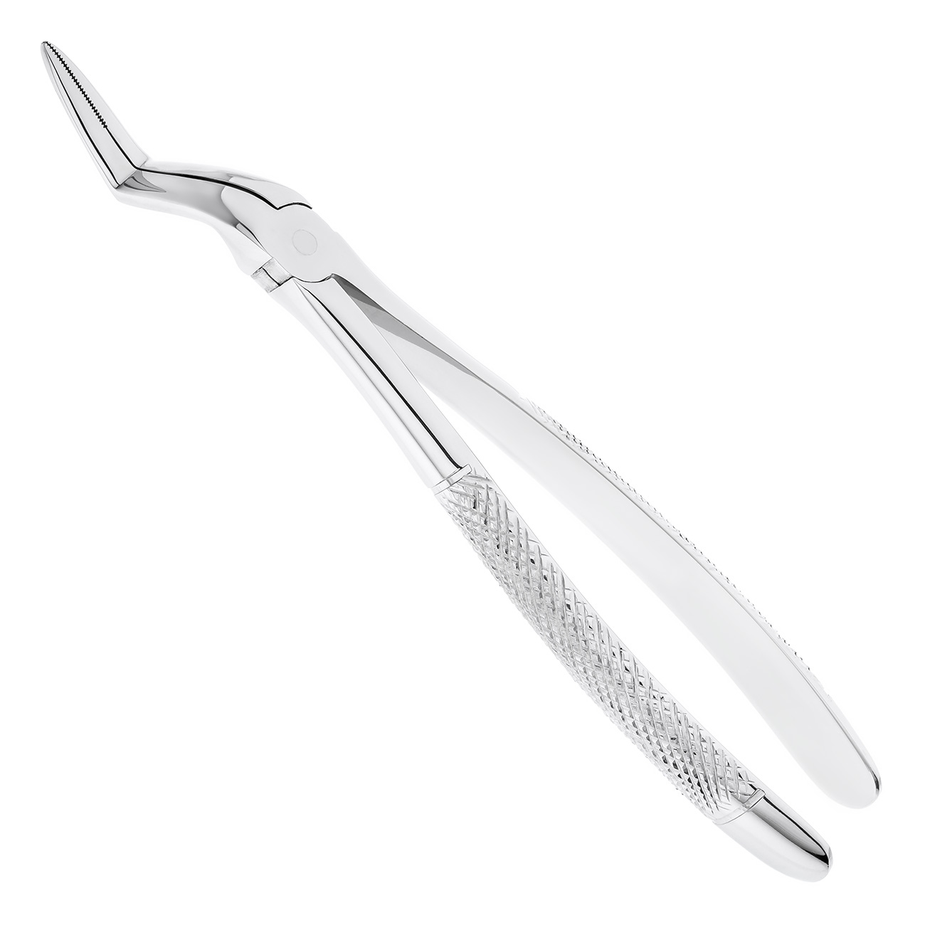 Штыковидная форма изгиба рабочей части обеспечивает удобство в работе с корнями зубов верхней челюсти в любом квадранте. Щечки щипцов имеют продолговатую форму, с внутренней стороны имеют продольно-поперечные насечки и сходятся на конце, благодаря чему осуществляется качественная фиксация на корне удаляемого зуба.