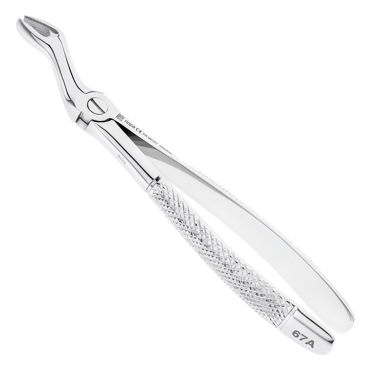 Щипцы для удаления третьих моляров формы №67А немецкого производителя nopa instruments Medizintechnik GmbH предназначены работы на верхней челюсти.