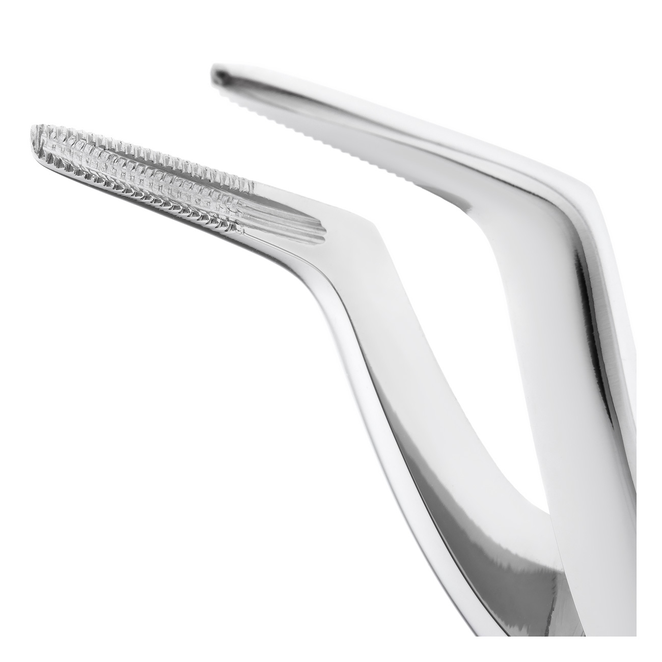 Узкие и удлиненные сходящиеся рабочие части с продольно-поперечными насечками на внутренней поверхности обеспечивают плотный захват глубоко расположенных корней и облегчают доступ при работе в любом квадранте.