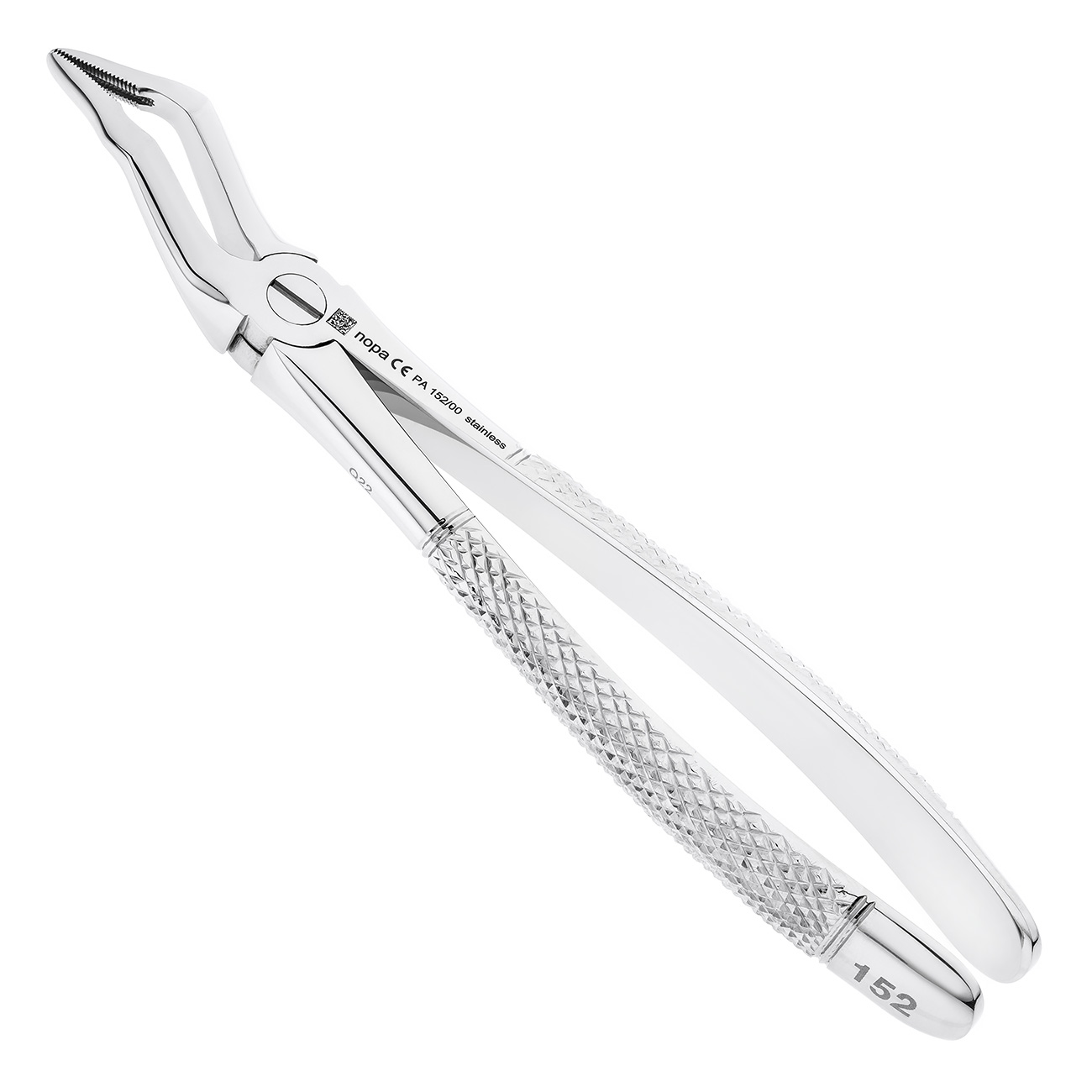 Для удаления корней на верхней челюсти используются щипцы формы №152 от немецкого производителя nopa instruments Medizintechnik GmbH.
