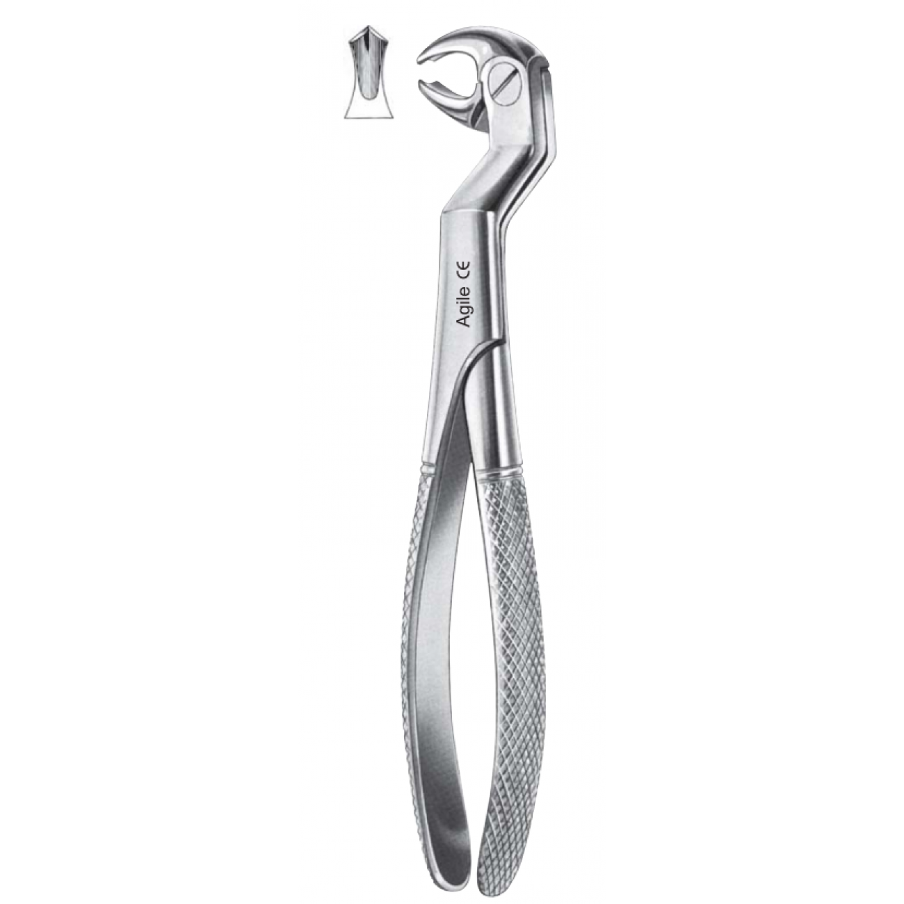 У нас вы можете приобрести левосторонние клювовидные стоматологические щипцы AGILE №22 1/2 L для удаления левых нижних моляров и зубов мудрости по доступной цене.