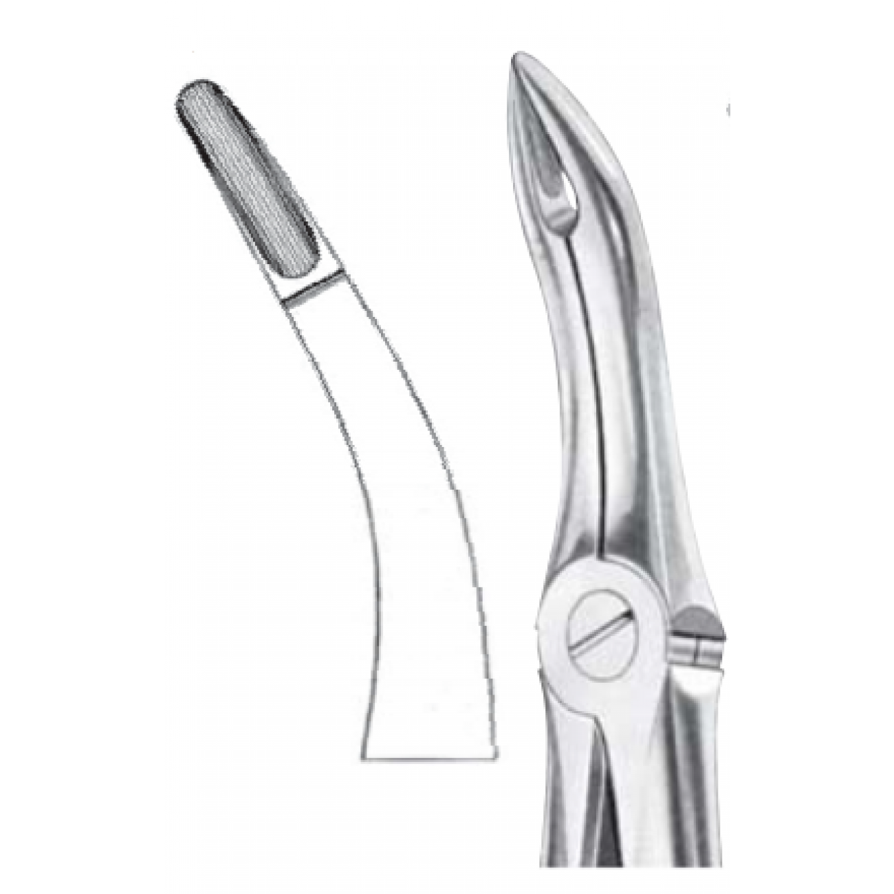 Изогнутые ультратонкие щечки инструмента легко проникают в зубную лунку и обеспечивают надежный охват шейки корня зуба. Для лучшего приложения силы щипцы оснащены длинными эргономичными рукоятками с перекрестной насечкой.