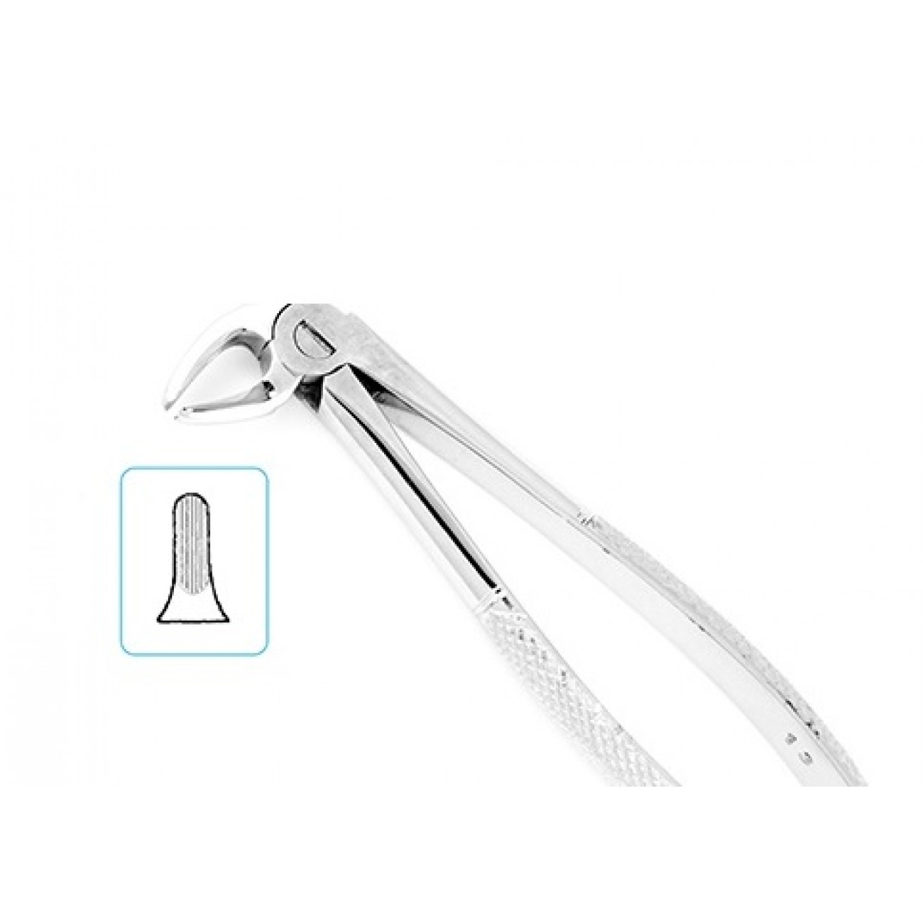 Форма рабочих частей соответствует анатомическим особенностям удаляемых зубов — клювовидные, несходящиеся. Эргономичные рукоятки для более прочного удержания и захвата. Изготовлены из высококачественной нержавещей стали. Длина 150 мм
