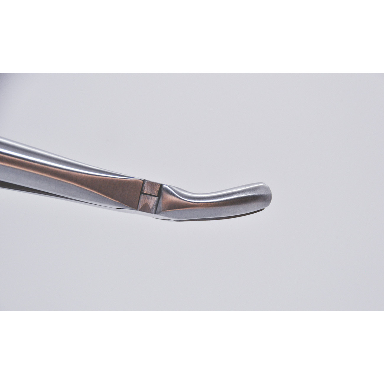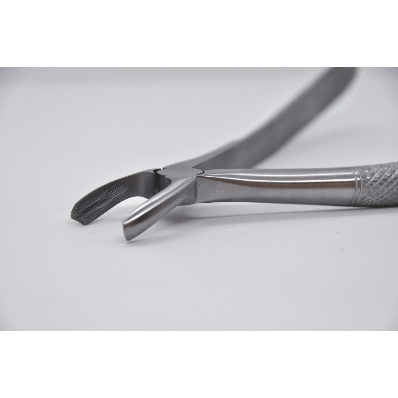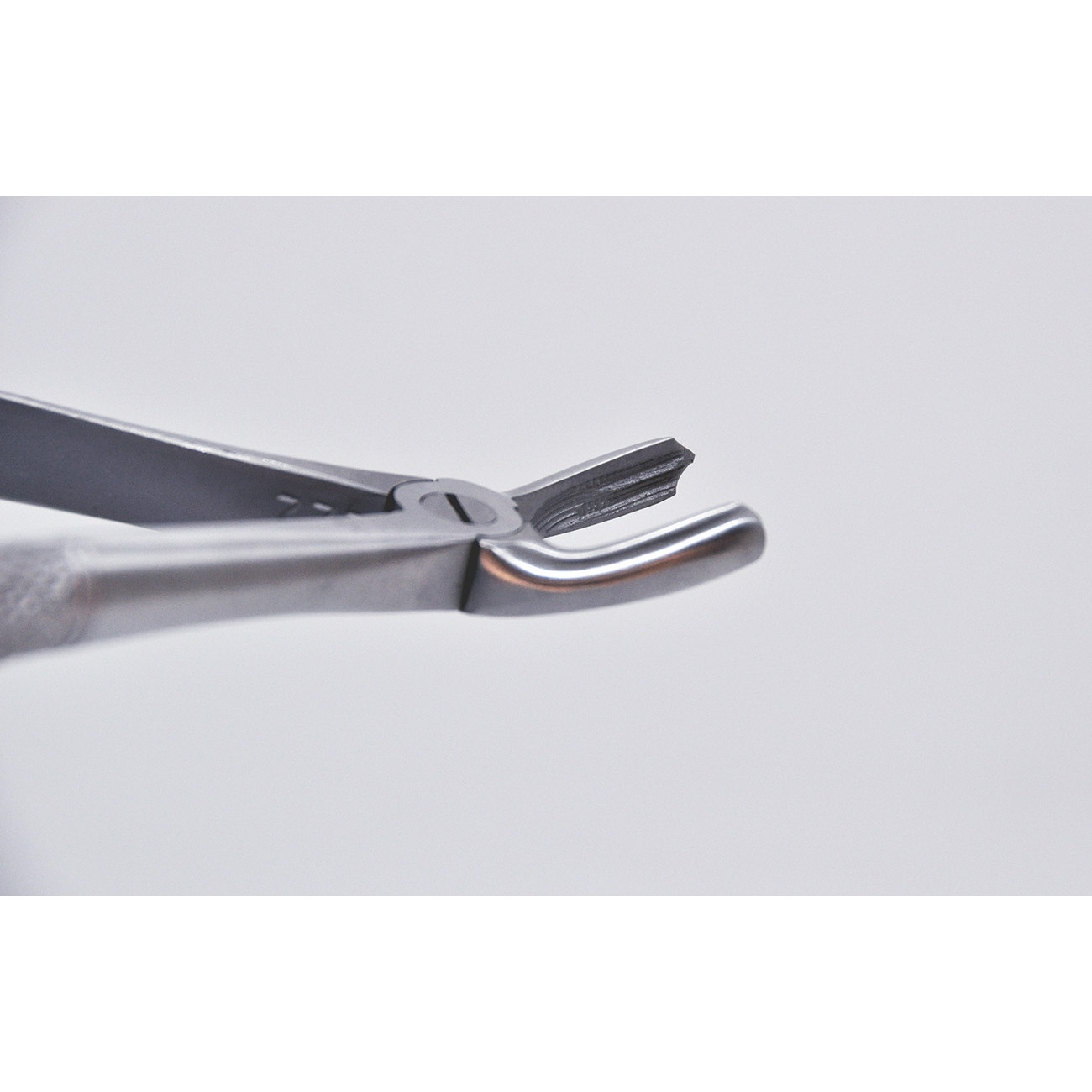 Инструмент с двойным изгибом обеспечивает оптимальный доступ к большим коренным зубам и быструю экстракцию. Для лучшего приложения силы щипцы оснащены длинными эргономичными рукоятками с перекрестной насечкой.
