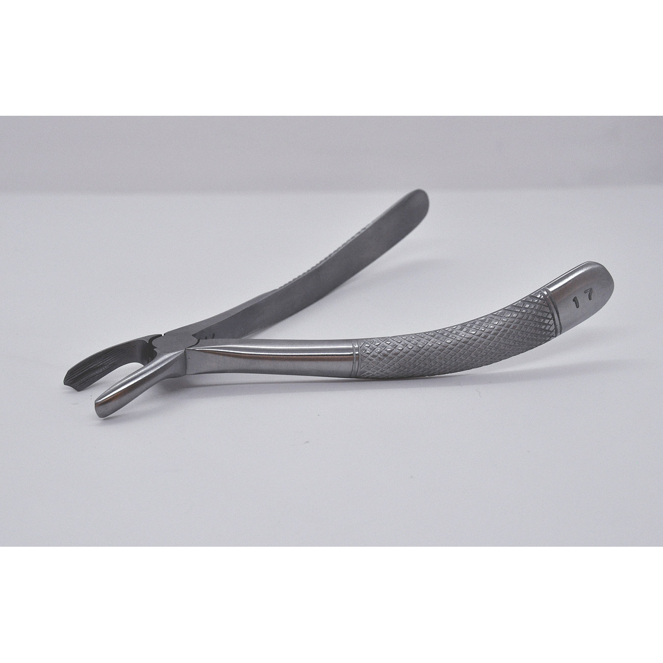 S-образные правосторонние стоматологические щипцы №17 с шипом предназначены для удаления моляров верхней челюсти у взрослых пациентов.