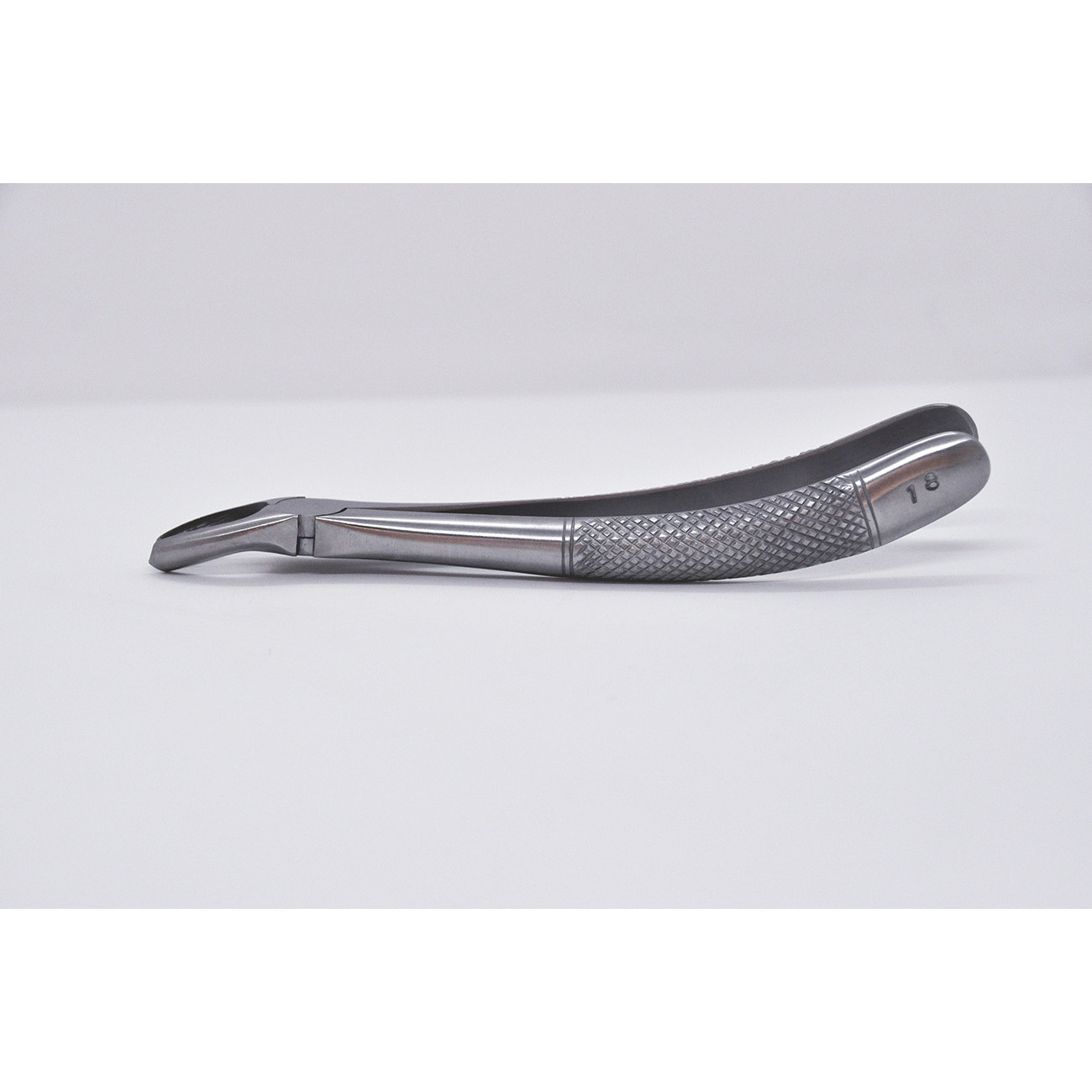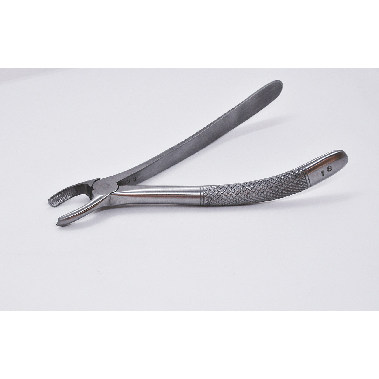 S-образные левосторонние стоматологические щипцы №18 с шипом предназначены для удаления моляров верхней челюсти у взрослых пациентов.