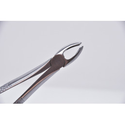 Инструмент с двойным изгибом обеспечивает оптимальный доступ к большим коренным зубам и быструю экстракцию. Для лучшего приложения силы щипцы оснащены длинными эргономичными рукоятками с перекрестной насечкой.