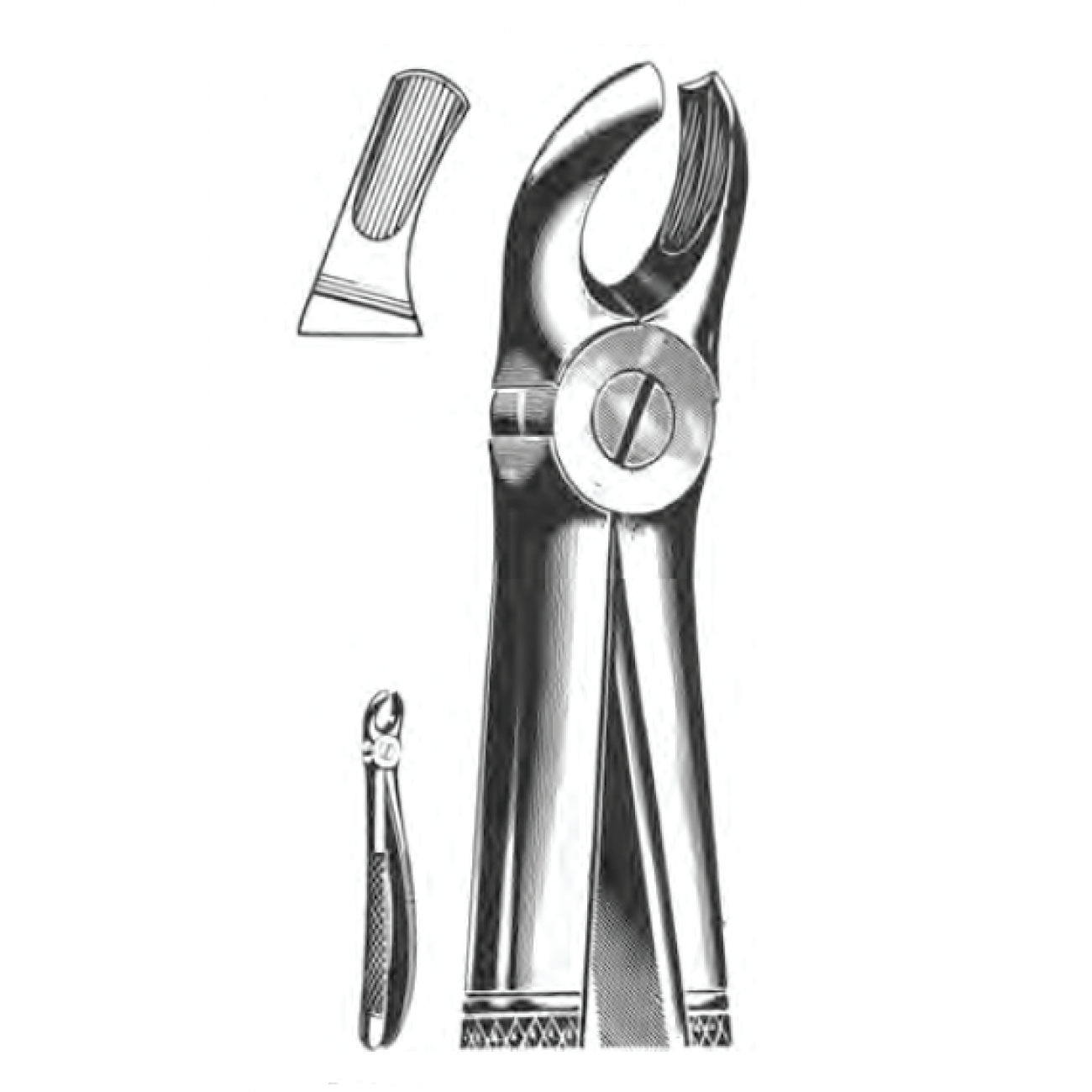 Форма рабочих частей соответствует анатомическим особенностям удаляемых зубов — S-образные, несходящиеся губки с шипом. Эргономичные рукоятки для более прочного удержания и захвата. Изготовлены из высококачественной нержавещей стали. Длина 165 мм