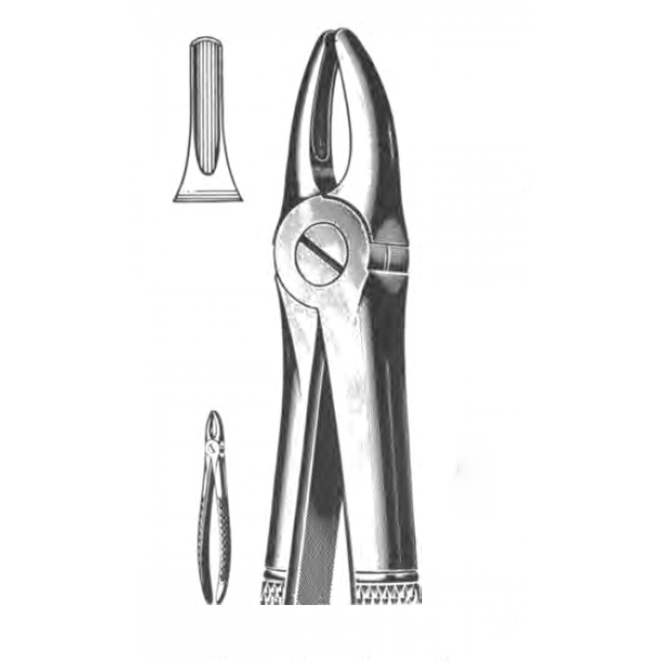 Несходящиеся щечки полукруглой формы обеспечивают оптимальный захват зубов фронтальной группы и быструю экстракцию. Для лучшего приложения силы щипцы оснащены длинными эргономичными рукоятками с перекрестной насечкой.
