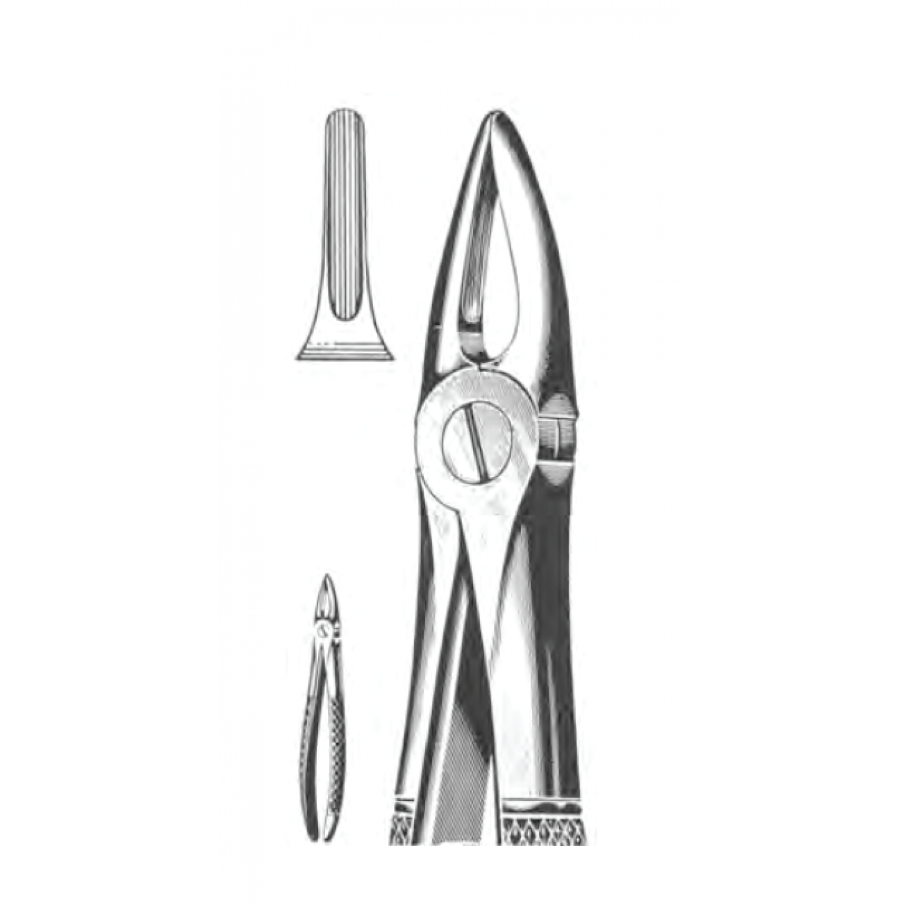 Сходящиеся прямые щечки инструмента обеспечивают надежный охват шейки корня зуба и быструю экстракцию. Для лучшего приложения силы щипцы оснащены длинными эргономичными рукоятками с перекрестной насечкой.