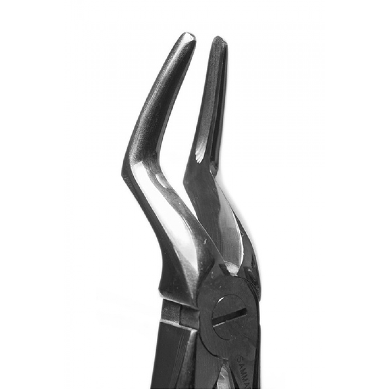 Изогнутая рабочая часть-байонет с перпендикулярной насечкой обеспечивает надежное удержание шейки корня в ходе экстракции. Для лучшего приложения силы щипцы оснащены длинными эргономичными рукоятками с перекрестной насечкой.