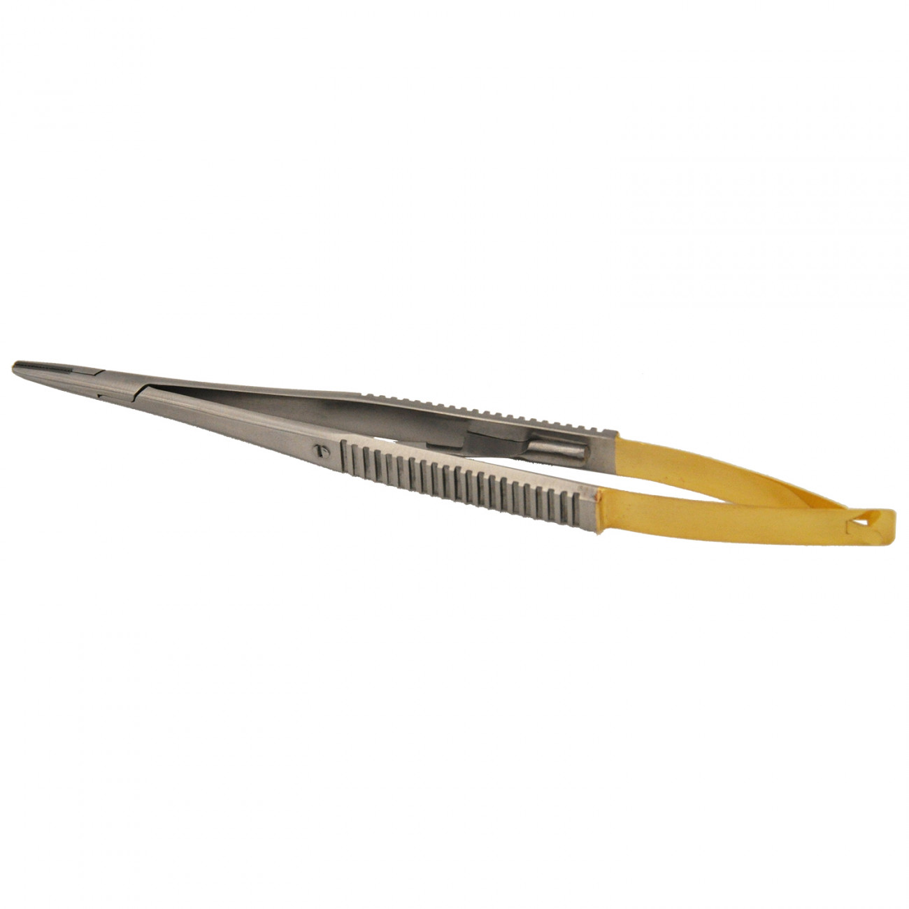 Микрохирургический иглодержатель Кастровьехо AGILE 07-243 PRO с плоской пружиной предназначен для проведения хирургических игл диаметром до 5/0 через ткани полости рта при проведении хирургических операций в стоматологии, включая процедуры имплантации.