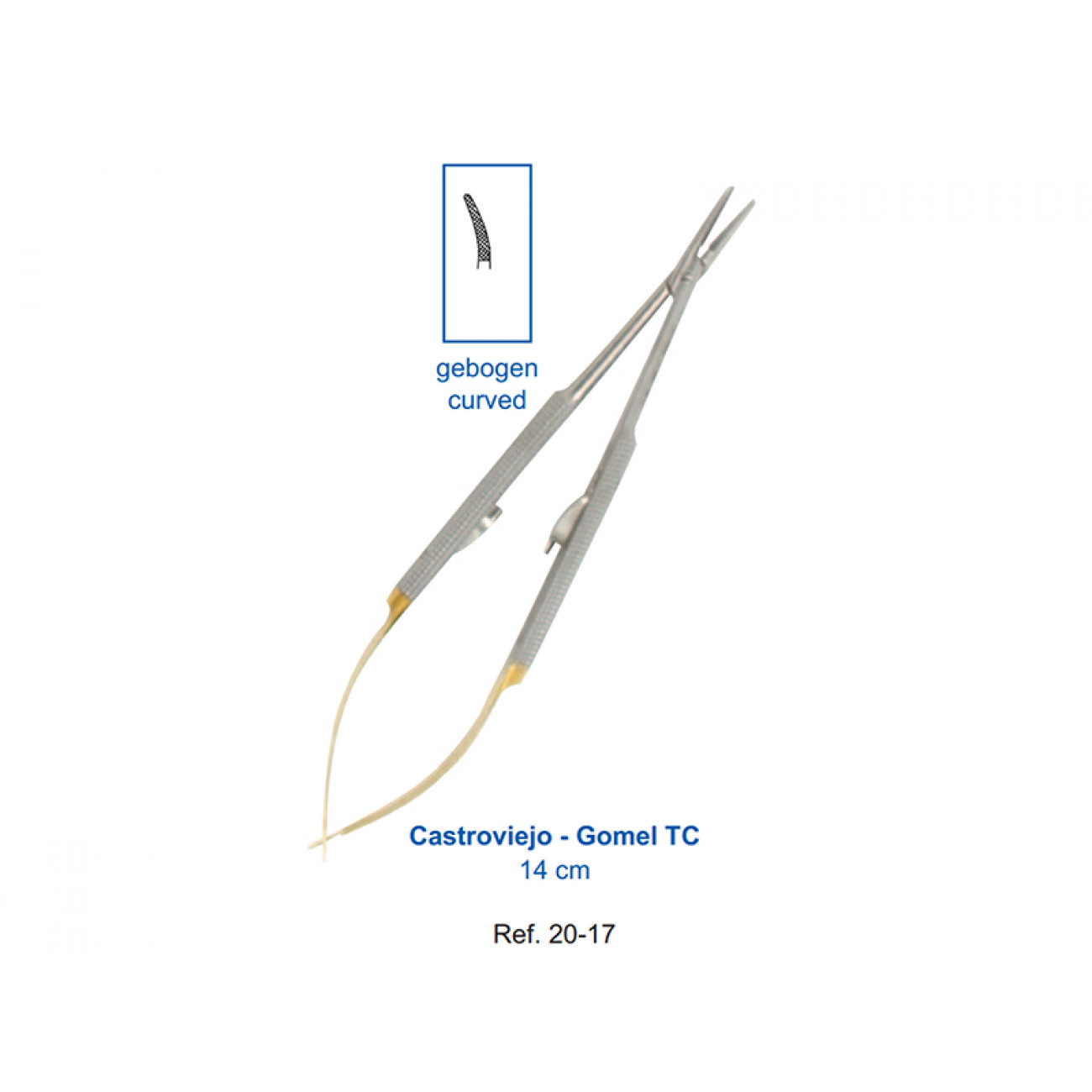 У нас вы можете приобрести хирургический изогнутый иглодержатель Castroviejo-Gomel TC HLW 20-17 длиной 14 см по доступной цене.