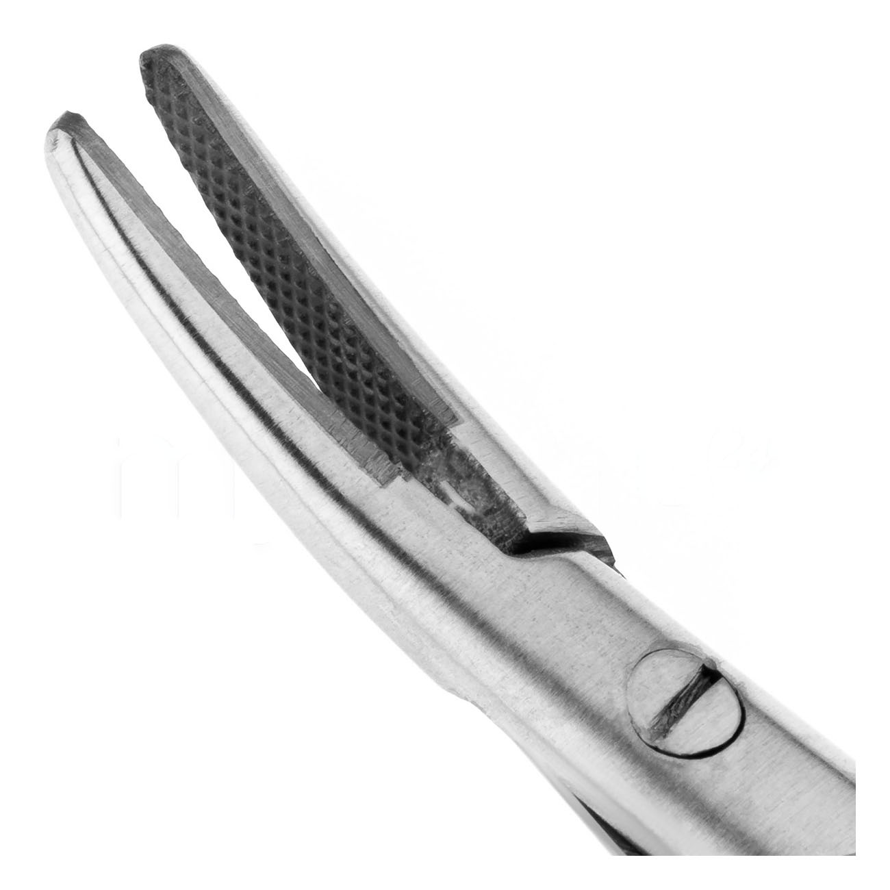 Игла фиксируется на месте при помощи плоских пружин. Щечки с диагональной насечкой помогут надежно удержать тонкую иглу при прохождении сквозь грубые ткани десны. Твердые вставки из карбида вольфрама на рабочей части иглодержателя отличаются устойчивостью к износу и значительно продлевают срок службы инструмента.