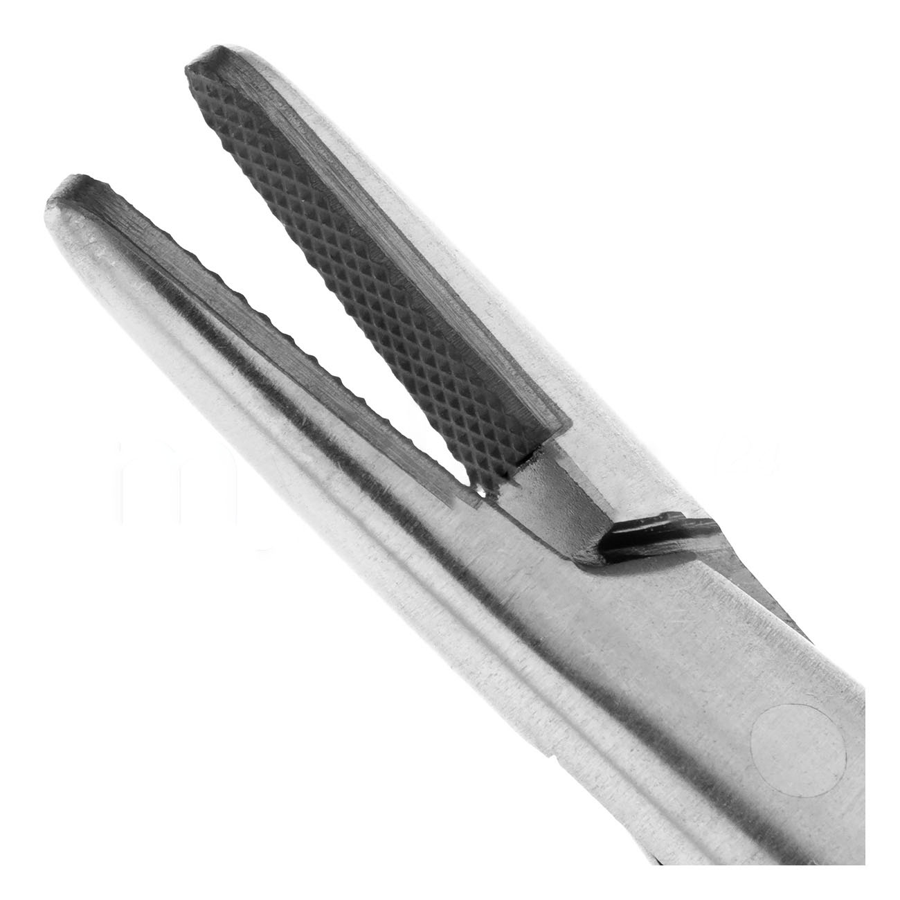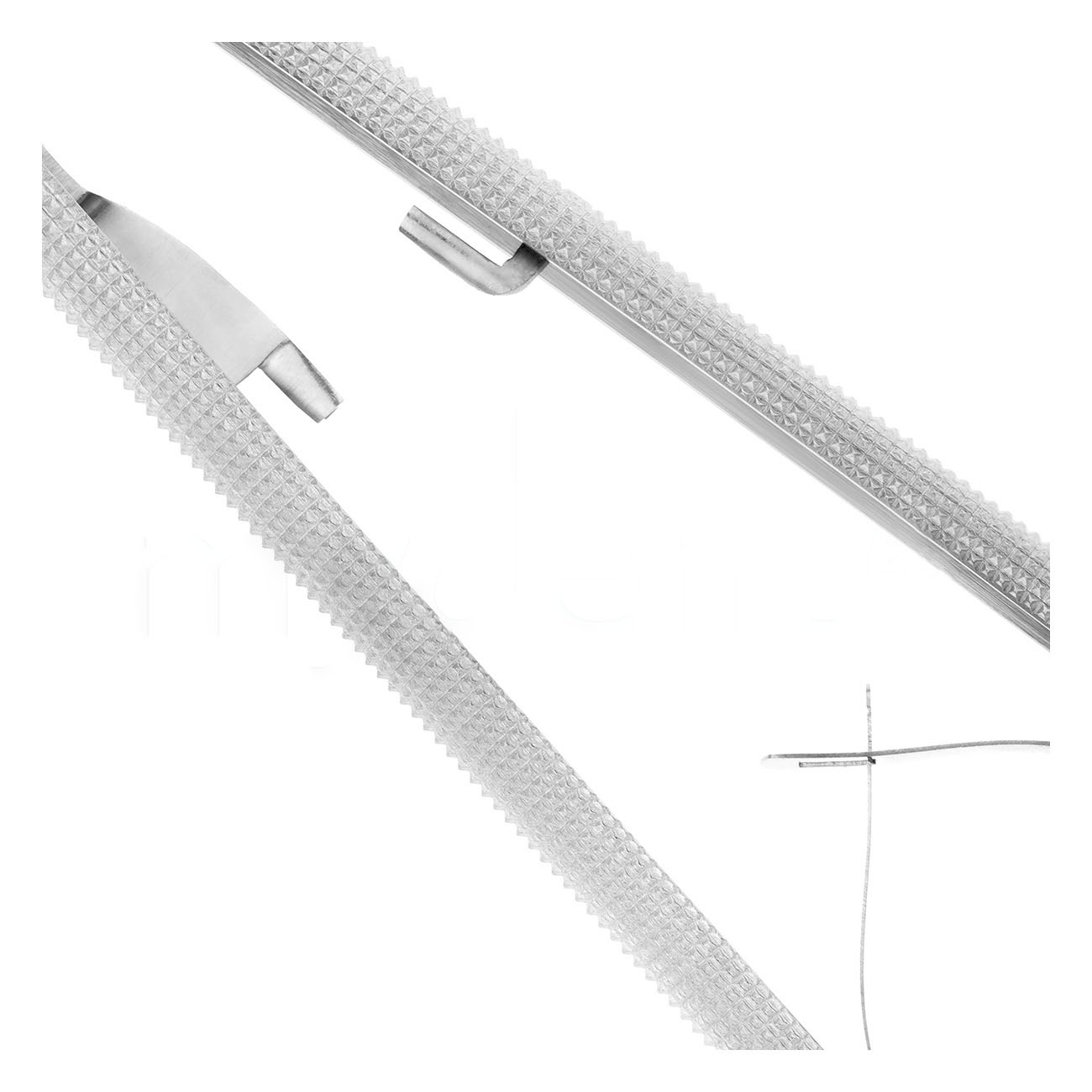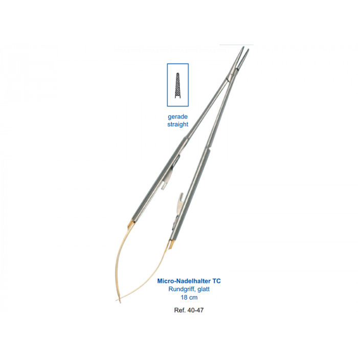 Игла фиксируется на месте при помощи плоских пружин. Щечки с диагональной насечкой помогут надежно удержать тонкую иглу при прохождении сквозь грубые ткани десны. Твердые вставки из карбида вольфрама на рабочей части иглодержателя отличаются устойчивостью к износу и значительно продлевают срок службы инструмента.