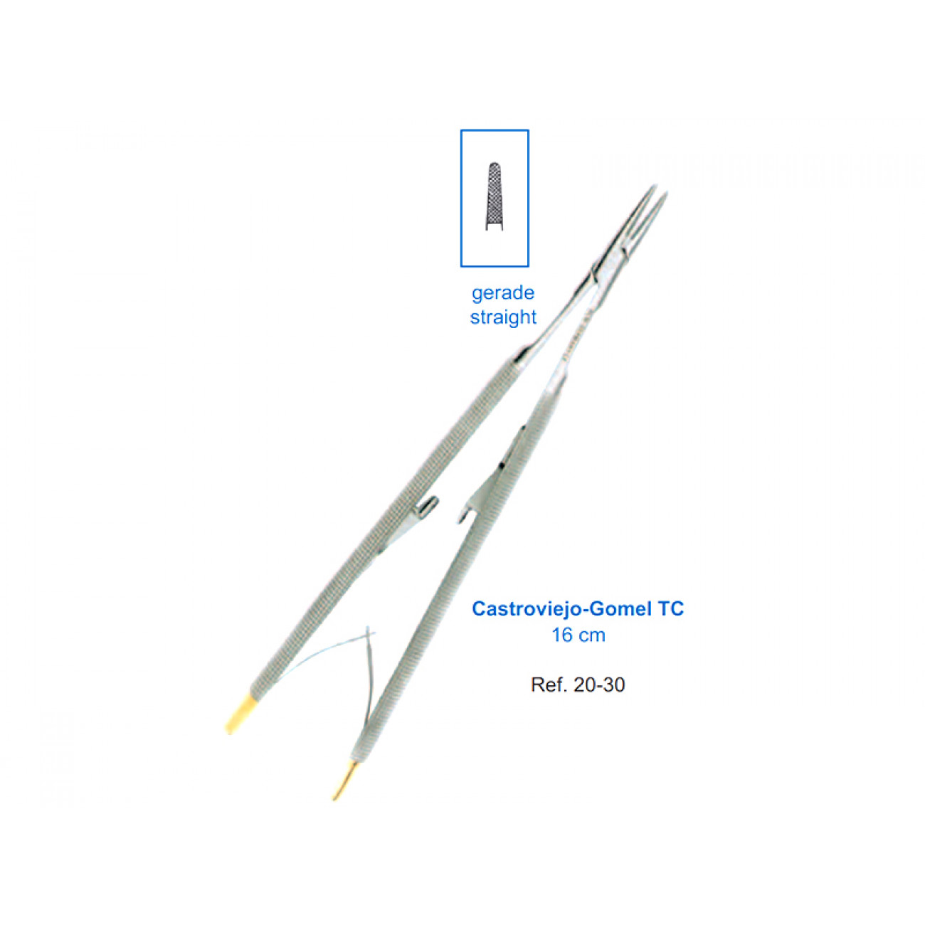 У нас вы можете приобрести хирургический прямой иглодержатель Castroviejo-Gomel TC HLW 20-30 длиной 16 см по доступной цене.