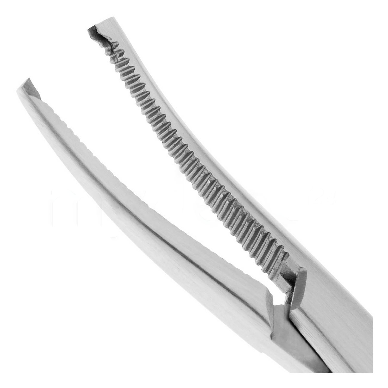"Материал:" зажим изготовлен из прочной и долговечной стали, что обеспечивает его надёжность и устойчивость к коррозии. Зубчики на поверхности инструмента позволяют надёжно фиксировать ткани и предотвращают их скольжение во время манипуляций.