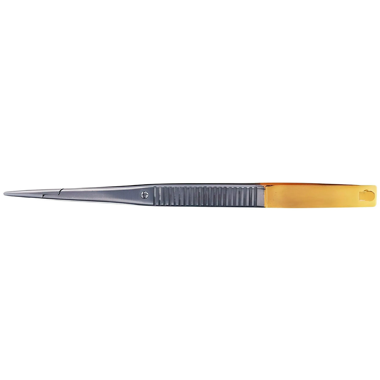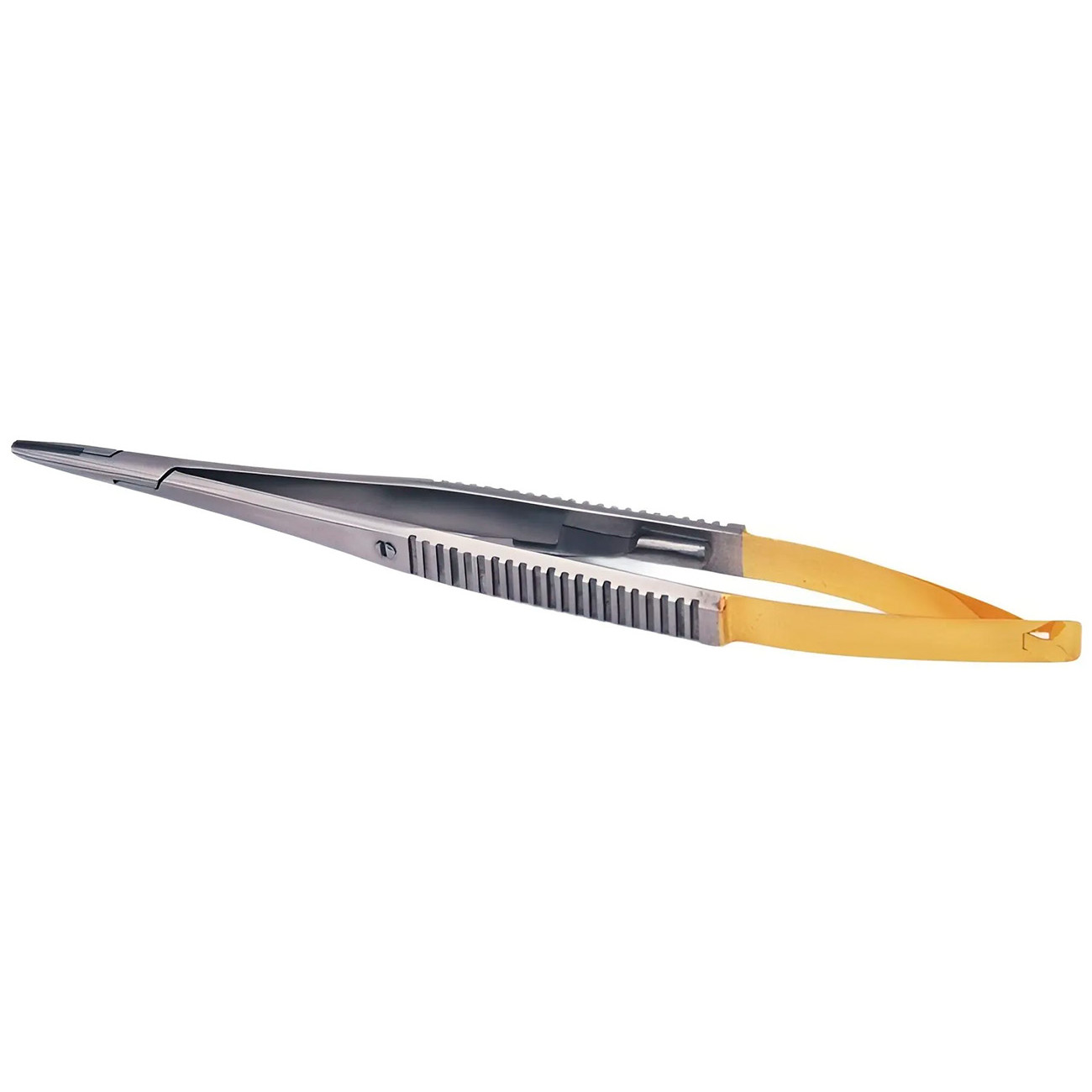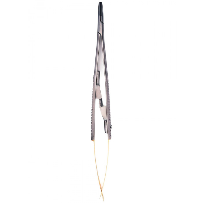Микрохирургический иглодержатель Кастровьехо AGILE 07-243 с плоской пружиной предназначен для проведения хирургических игл диаметром до 5/0 через ткани полости рта при проведении хирургических операций в стоматологии, включая процедуры имплантации.
