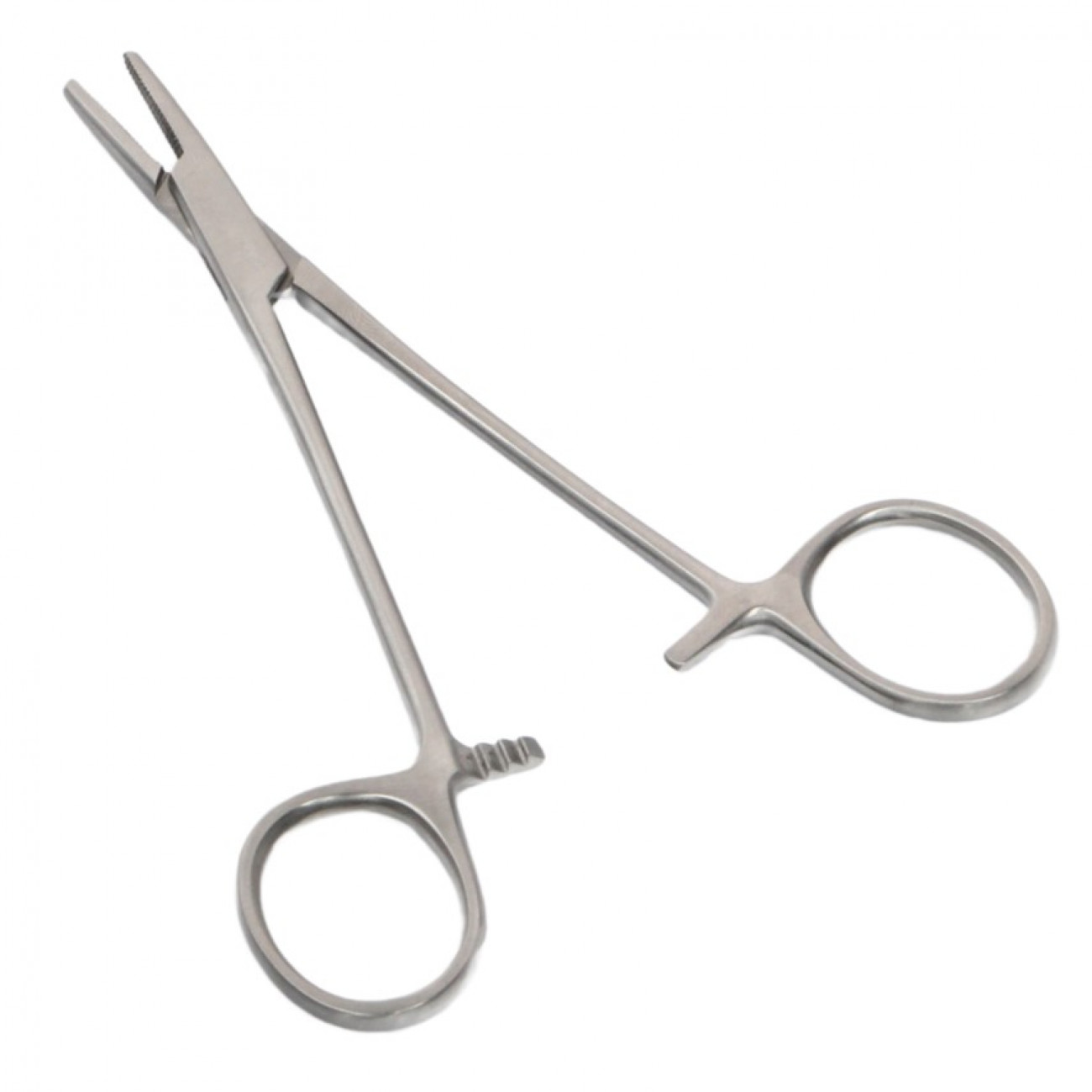 Тонкие рукоятки иглодержателя 25-100 не закрывают обзор и не стесняют движений инструмента в полости рта. Иглодержатель удерживается в сведенном состоянии при помощи простого ступенчатого фиксатора-кремальеры. Щечки с насечкой помогут надежно удержать иглу при прохождении сквозь грубые ткани десны.