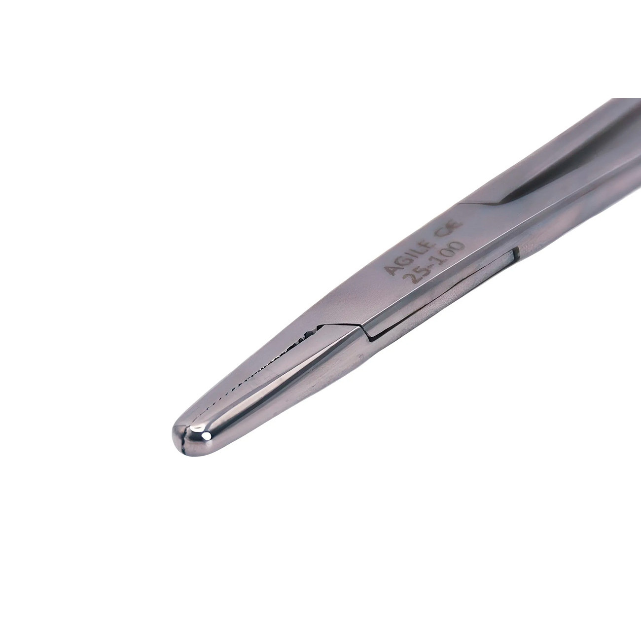 Иглодержатель 25-100 от компании Agile устойчив к коррозии и воздействию едких стоматологических материалов. Инструмент можно стерилизовать в автоклаве при температуре до 135 °C.