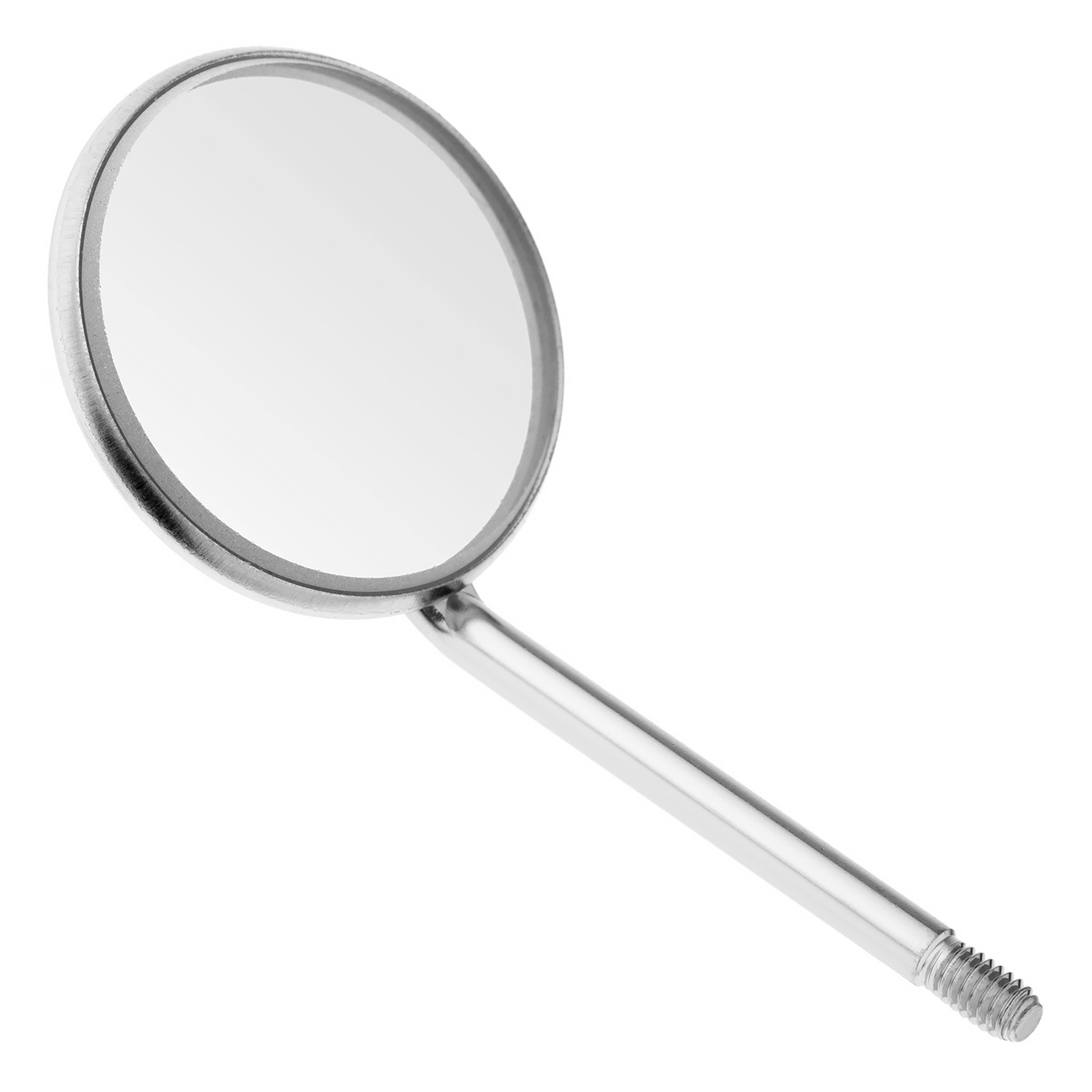 Рабочая часть зеркала расположена по отношению к держателю под тупым углом, что способствует осмотру труднодоступных мест в ротовой полости. Также стоматологический инструмент служит для отведения и удержания мягких тканей.