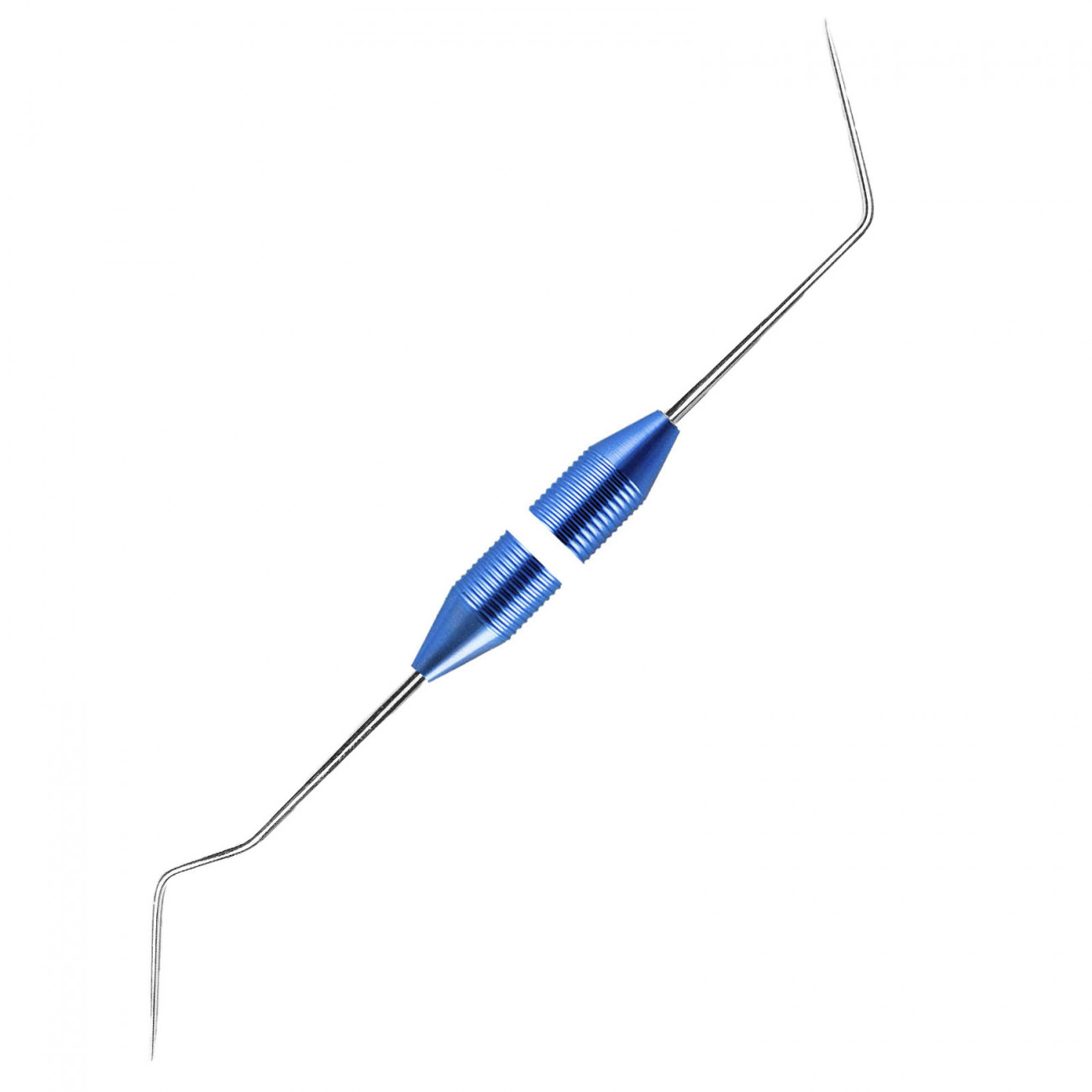 Благодаря особой финишной обработке и рукоятке из легкого титанового сплава ярких цветов зонды Экрадент отличаются прочностью на изгиб, устойчивостью к коррозии и различным методы стерилизации. Прямой хвостовик рабочей части обеспечивает удобство при работе с зубами фронтальной группы, в то время как изогнутая часть подходит для работы с молярами и премолярами.