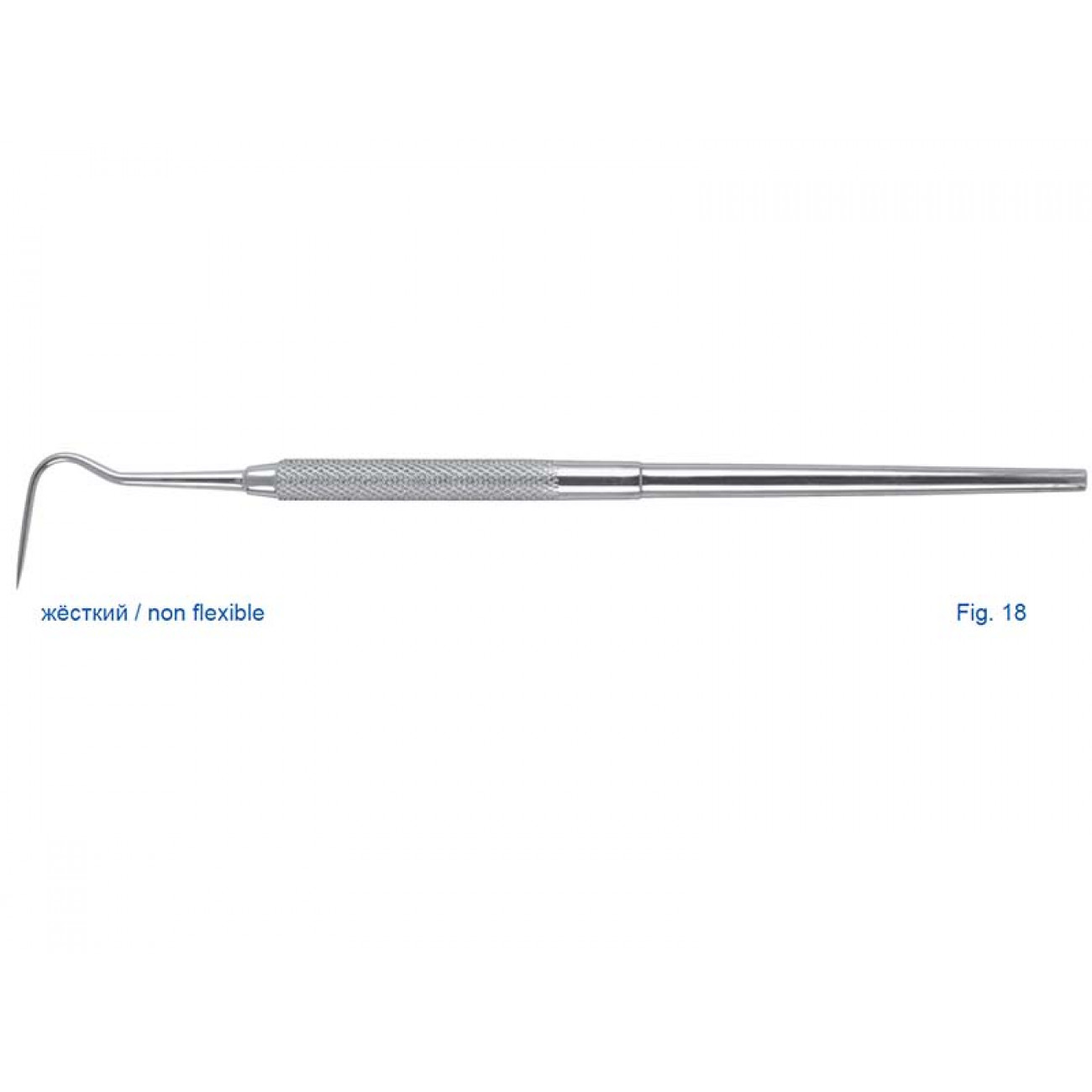Все инструменты производства HLW Dental Instruments обрабатываются вручную и проходят тщательное техническое тестирование для исключения возможности брака. Для изготовления зондов используется устойчивая к автоклавированию и прочим методам стерилизации нержавеющая сталь. Удобная небликующая рукоять с матовой насечкой обеспечивает лучшую видимость и контроль зонда в ходе диагностики кариозных поражений.