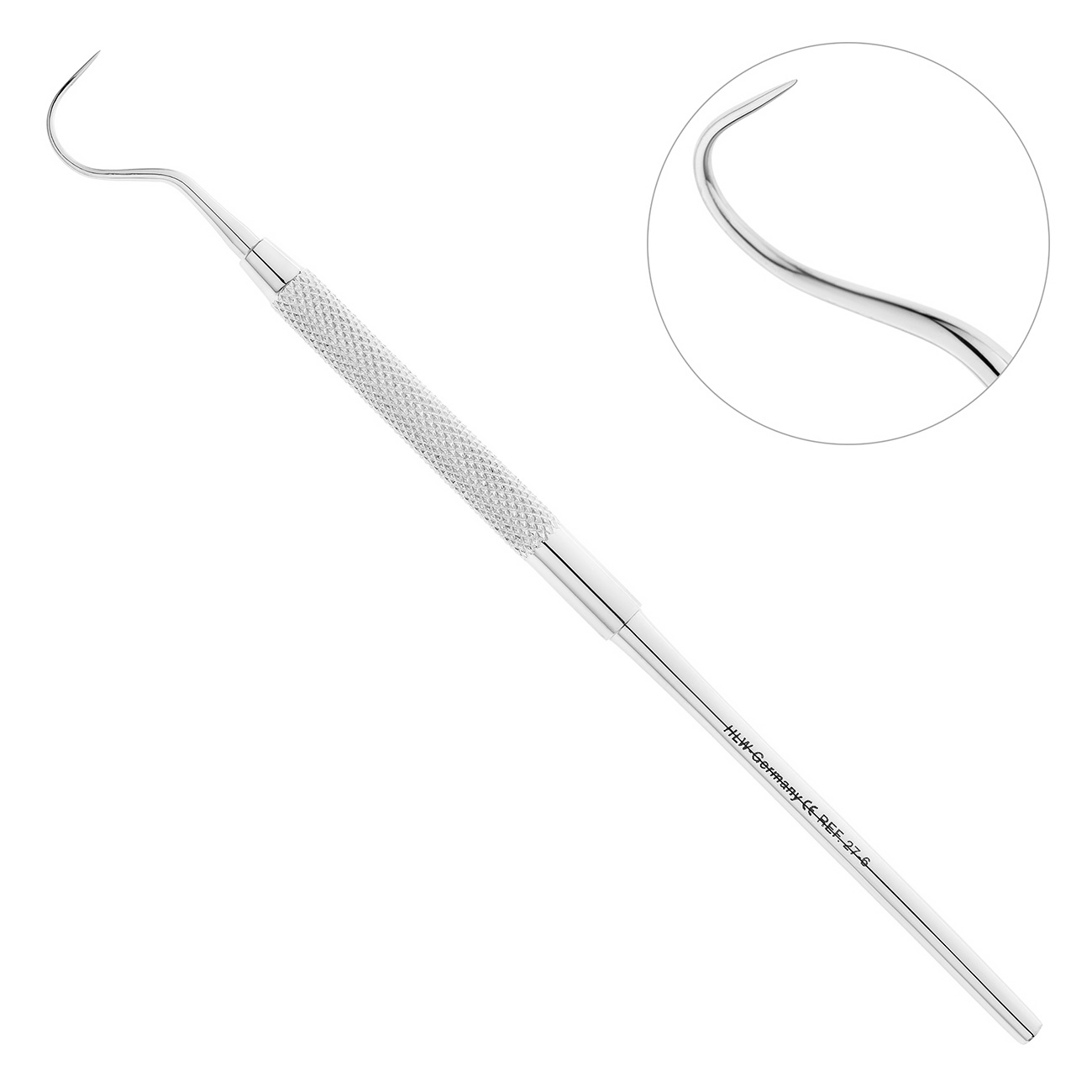 Все инструменты производства HLW Dental Instruments обрабатываются вручную и проходят тщательное техническое тестирование для исключения возможности брака. Для изготовления зондов используется устойчивая к автоклавированию и прочим методам стерилизации нержавеющая сталь. Удобная небликующая рукоять с матовой насечкой обеспечивает лучшую видимость и контроль зонда в ходе диагностики кариозных поражений.