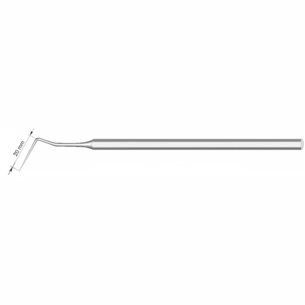 Рабочая часть загнута под углом 25° относительно продольной оси ручки зонда и смещена относительно нее немного вверх. Длина рабочей части — 20 мм
